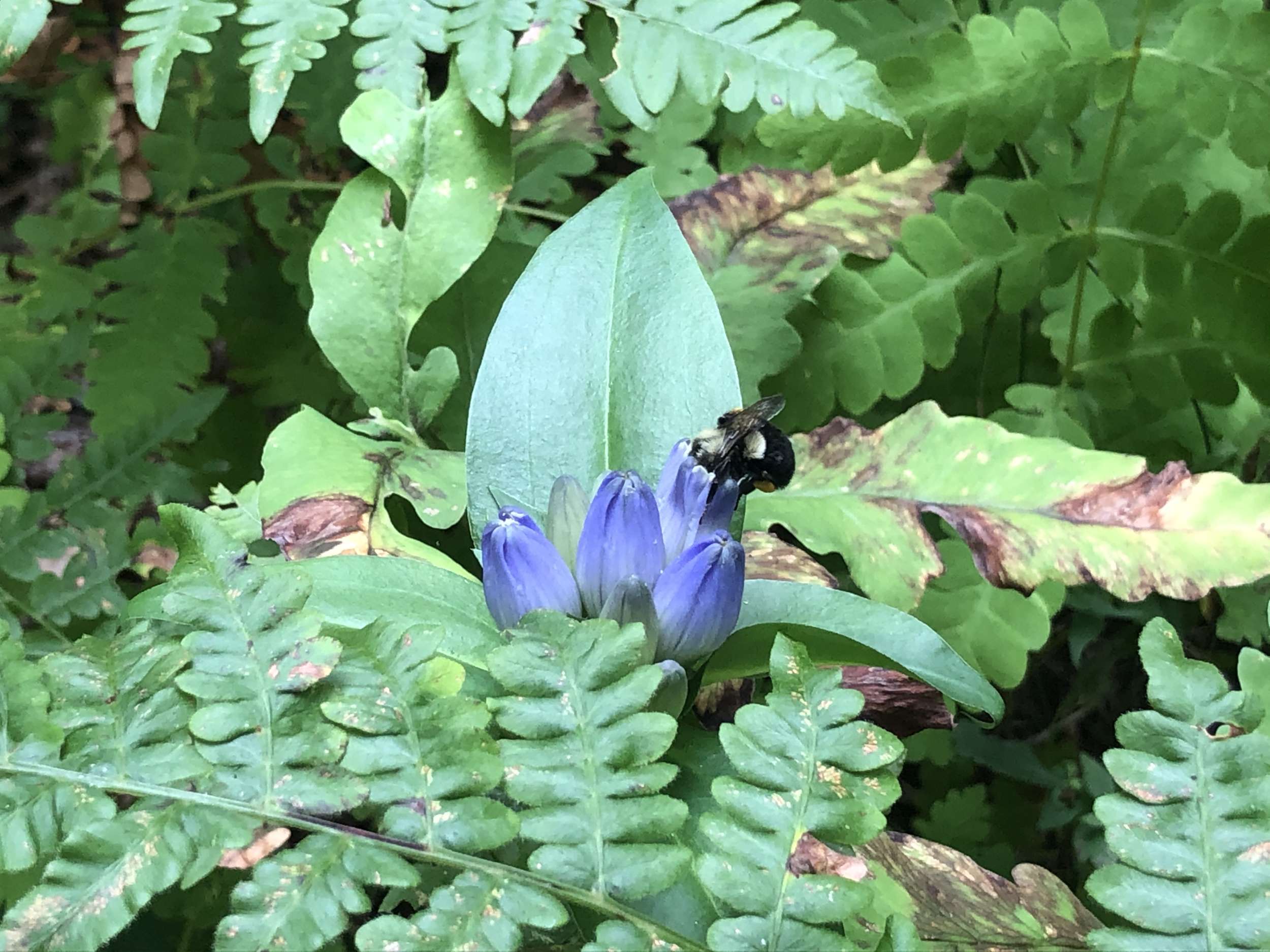 Vermont’s three Gentiana species are often called “bottle” gentians because their petals do not spread, and instead conceal the plants reproductive parts. This floral trait suggests a pollination syndrome (co-evolution strategy where the floral traits of a plant are used to attract a specific group of animals as pollinators) with insect visitors that are big enough to push through the petals to reach the plant’s nectaries, carrying and exchanging pollen along the way.