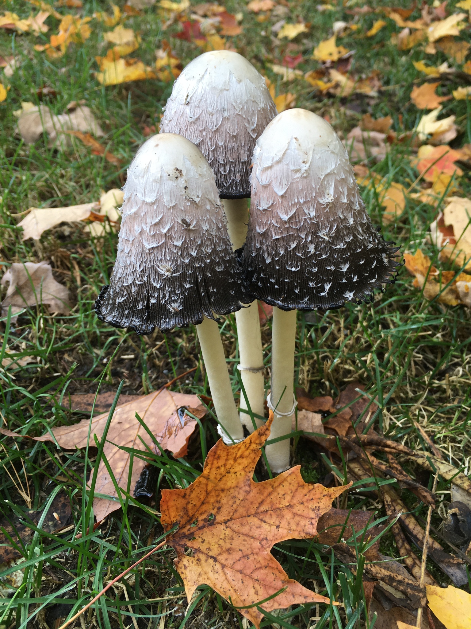 This month, the ghostly white forms of Shaggy Mane Ink Caps (Coprinus comatus) may be haunting a lawn near you. Particularly abundant after rain, these cylindrical mushrooms can seemingly appear out of nowhere and disappear just as quickly. Ink cap mushrooms undergo a self-digestion process called deliquescence, whereby they turn themselves into inky, black goo. The spores of shaggy manes, otherwise trapped deep inside the bell-shaped caps, are exposed to air currents as the mushrooms melt themselves from the bottom up. This species can go from pristine white to a black puddle on the grass in as little as 24 hours! Ink cap mushroom ink can actually be used for writing and drawing. The illustrations in the book Entangled Life by Merlin Sheldrake were created using the ink from shaggy mane mushrooms.