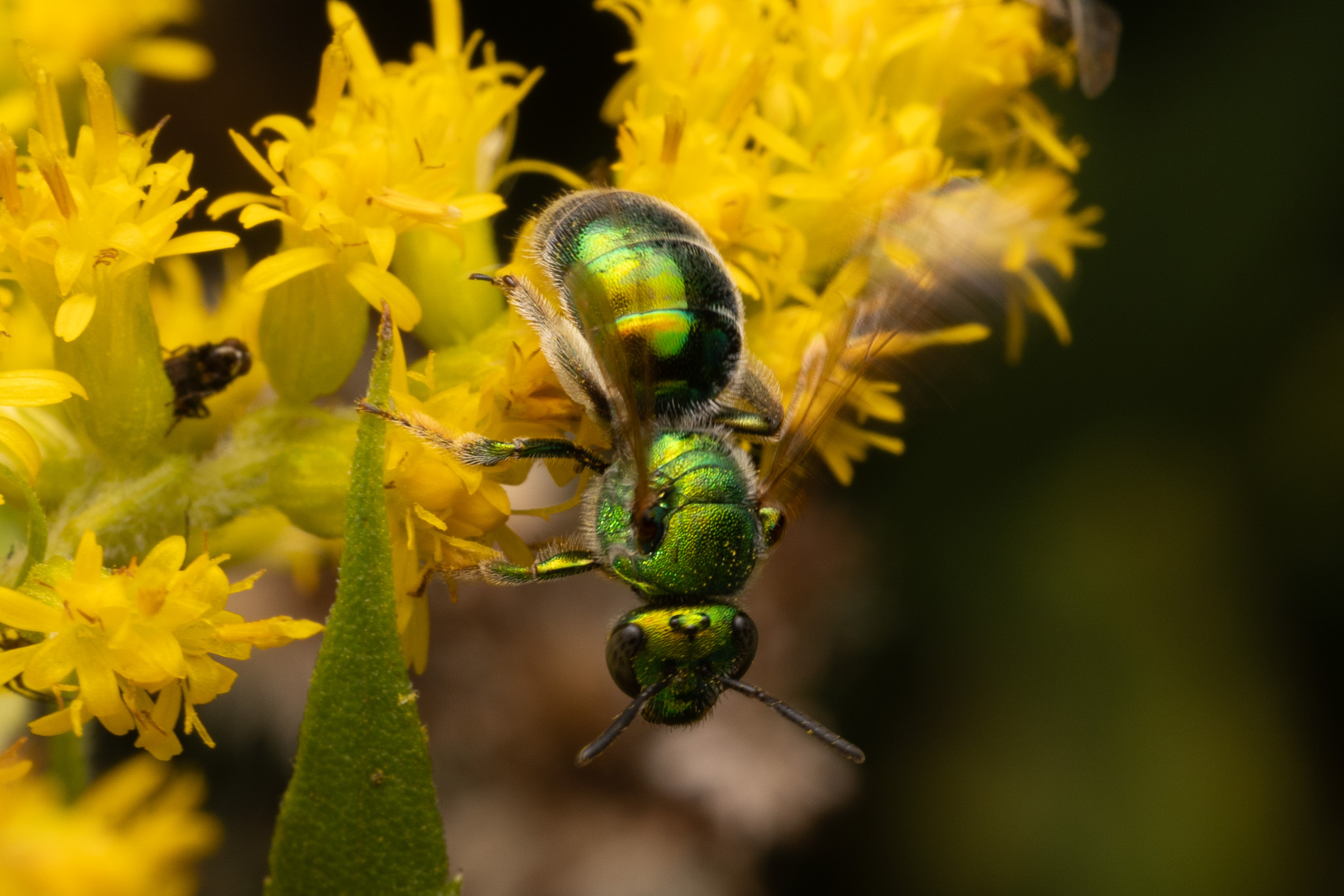 With cooler temperatures and lower angle light, fall can be a wonderful time to work on your bee photography and identification skills. The limited flower options tend to concentrate any remaining bees and the fall colors make an artistic background.