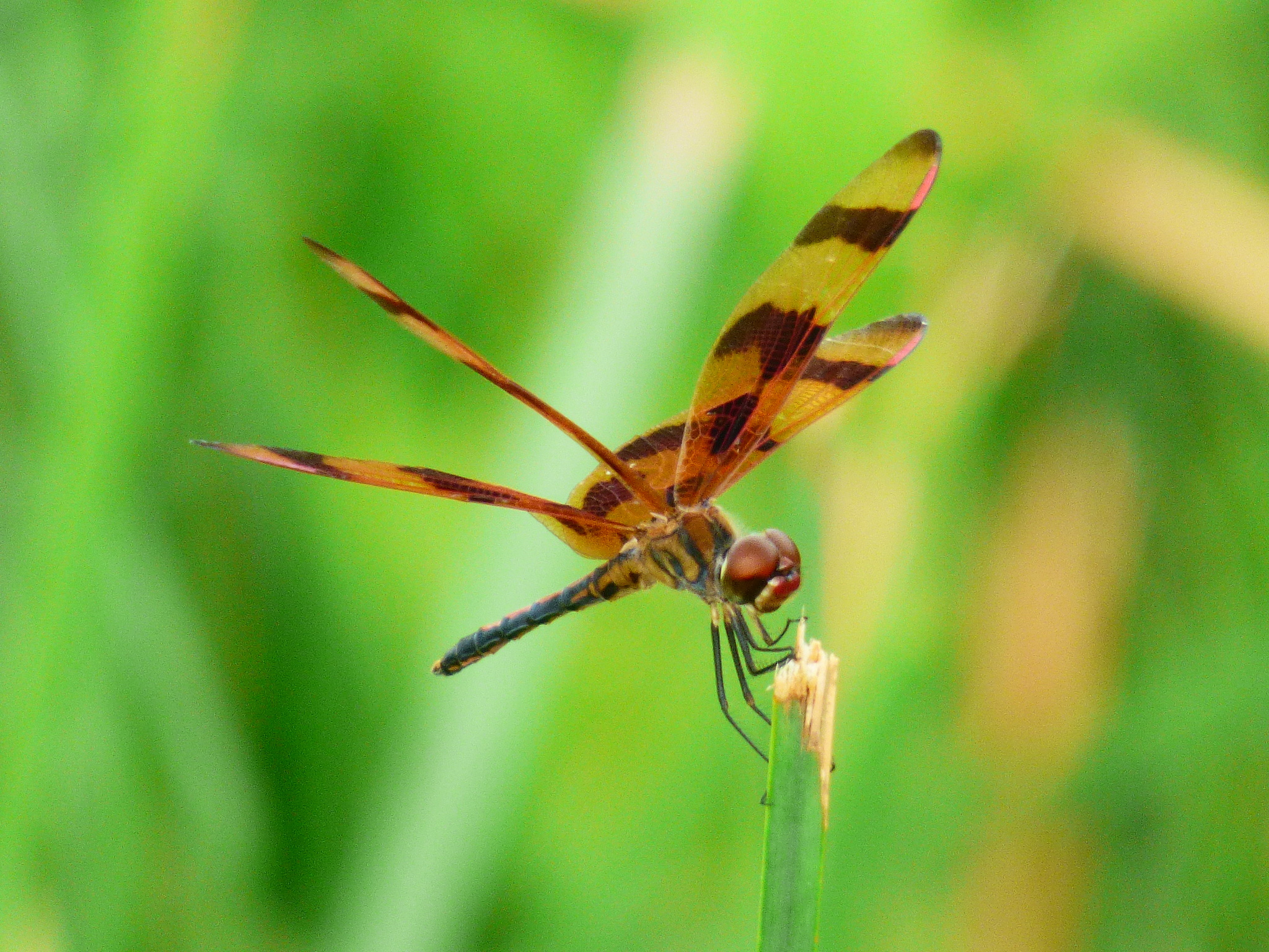 As fall comes to the Upper Valley, pumpkins appear on farm stands and nature starts to wind down for winter. One insect found in Vermont stays ready for fall all year round: the Halloween Pennant dragonfly (Celithemis eponina). Named for its distinctive wing coloration, the adults of this species sport orange to yellow wings with dark-brown bands reminiscent of Halloween color schemes.