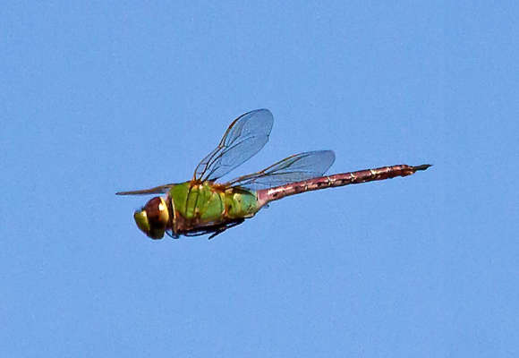 Right now, many Common Green Darners (Anax junius) are stretching their wings for the first time and are about to make the most important flight of their lives. Some lucky nymphs developed quickly this summer, but many have spent over a year in the cool waters of northern New England. As the temperatures dropped last fall, many nymphs entered diapause, a state of suspended development under the ice, and waited for their time to shine. Any day now, they will start a flight that could take several weeks to complete.