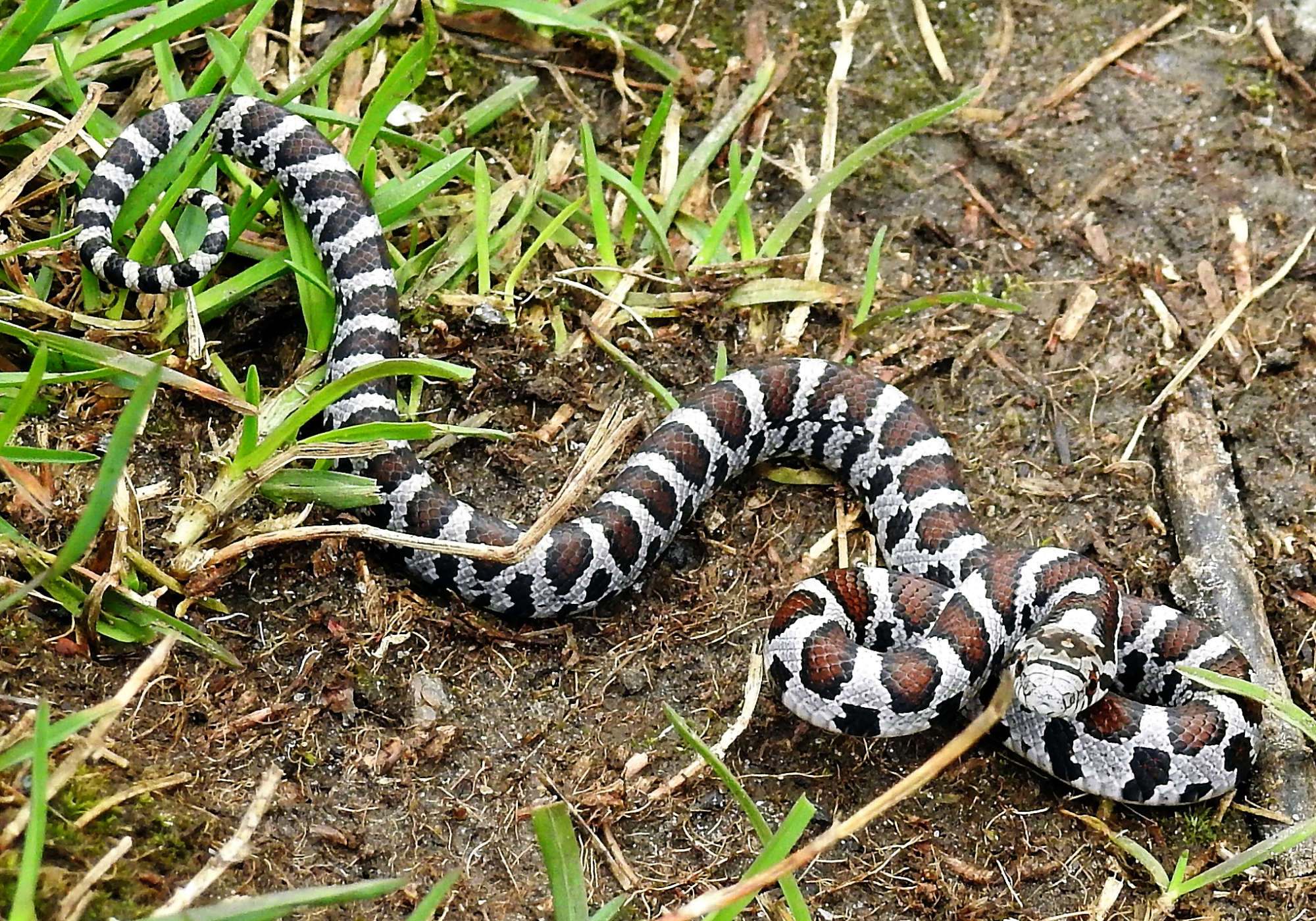 Snakes, such as Dekay’s brownsnake (Storeria dekayi), Garter snakes (Genus Thamnophis), and Red-bellied Snakes (Storeria occipitomaculata) will wait until a warm day after the first frost to move upland to a denning location; ideally below the frost line, so they do not freeze throughout the winter. These denning locations are known as hibernacula. Bigger snakes like Timber Rattlesnakes, Eastern Ratsnakes (Pantherophis alleghaniensis), and North American Racers (Coluber constrictor) may travel upwards of two miles to get to their winter hibernaculum.
