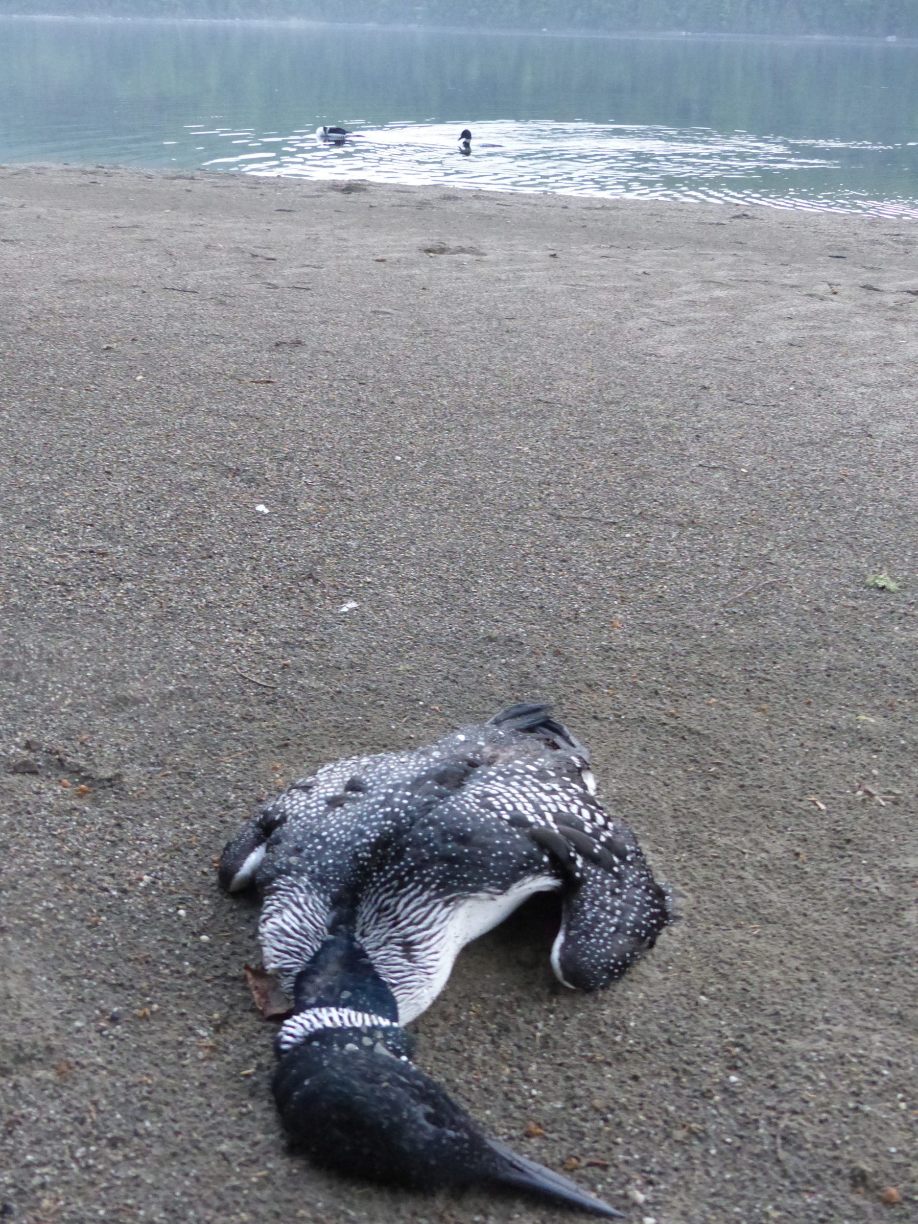 Paddlers reported this loon mortality on Molly’s Falls Reservoir in early June. The resident pair watches on, likely concerned about activity on a potential nesting island. Photo courtesy of Eric Hanson.