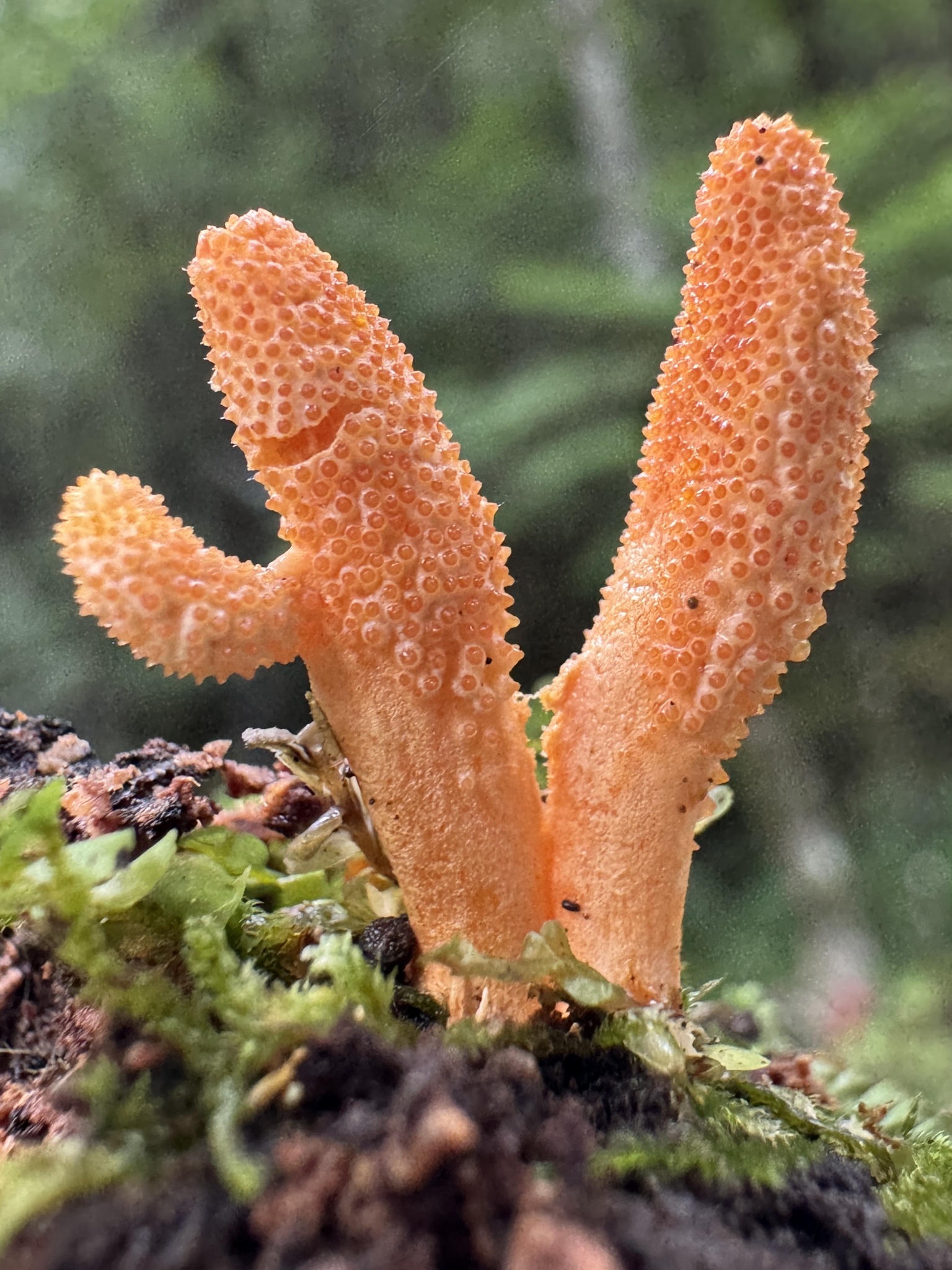 Scarlet Caterpillar Club (Cordyceps militaris) © iNaturalist user keara_giannotti (https://www.inaturalist.org/observations/237655493)