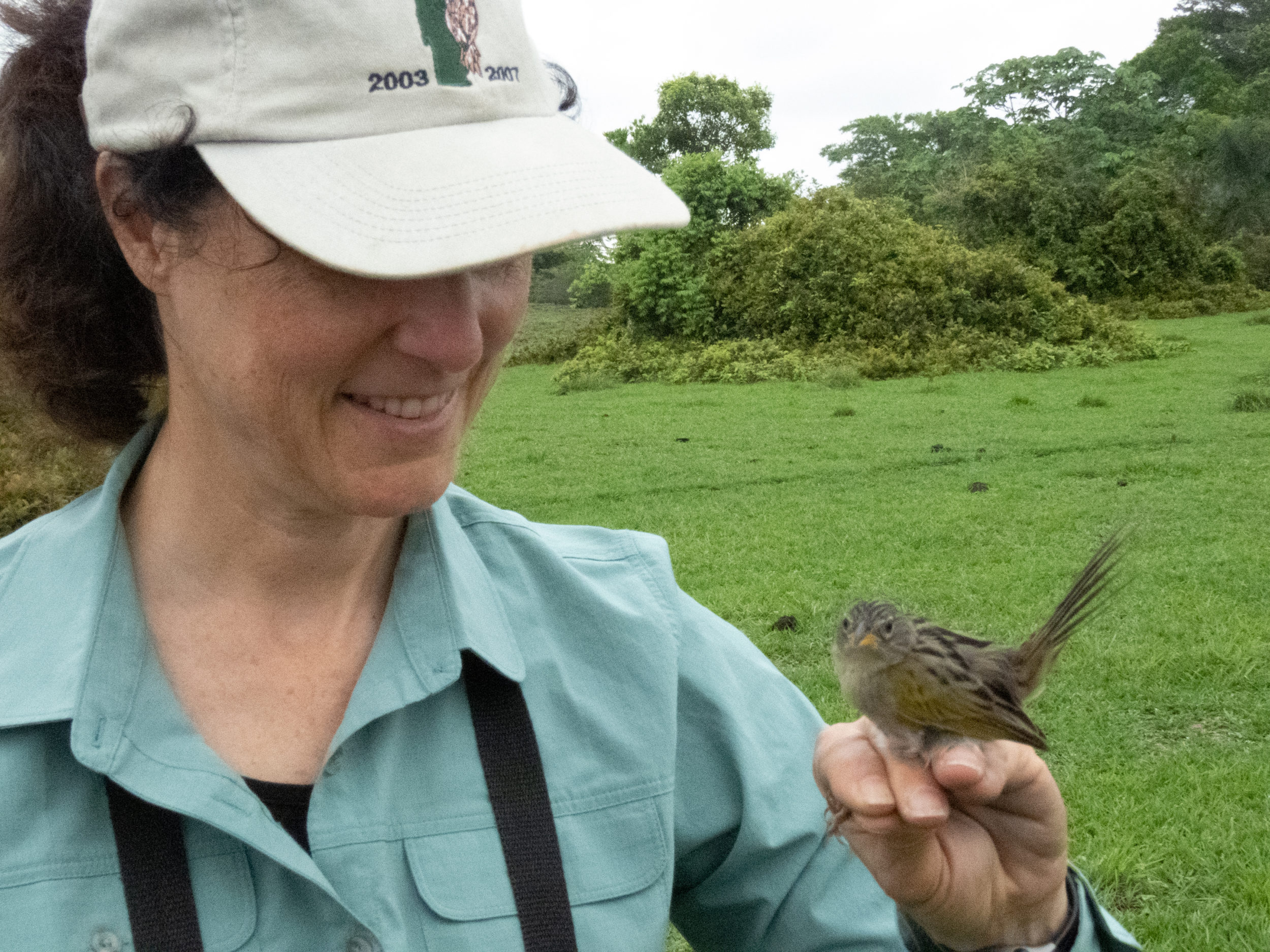 We captured six species, and found evidence of breeding condition for three of them. A Wedge-tailed Grass-finch with a fading brood patch indicated it had been incubating eggs within the past couple of weeks. A female of the only grassland hummingbird specialist, the White-tailed Goldenthroat, sported a highly vascularized brood patch, indicating that she was currently incubating. A Grassland Sparrow (a member of the same genus as the Grasshopper Sparrow found in U.S. grasslands), had a brood patch somewhere in between the other species. Our objective was to determine whether a larger effort would prove worthwhile, and we concluded that the answer is a resounding yes.
