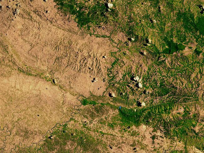 The border between Haiti (left) and the Dominican Republic (right), shows the disastrous extent of habitat loss in Haiti. (Photo: NASA/Goddard Space Flight Center Scientific Visualization Studio)