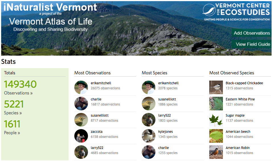 Join our growing community of citizen naturalists from around the Green Mountain State in discovering and sharing observations of Vermont life. Your observations can be turned into research-grade, citizen science data that will help us discover, track and ultimately conserve our natural heritage.