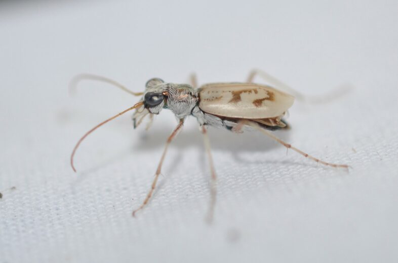 Ghost Tiger Beetle (Ellipsoptera lepida) visiting a moth light and photographed by Larry Clarfeld.