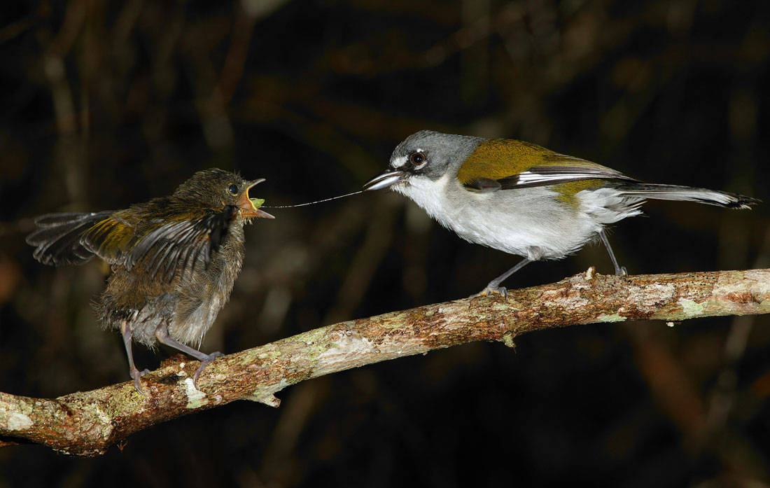 Adult and fledgling White-winged Warbler, another endemic species for which VCE’s Sierra de Bahoruco study yielded the first-ever documentation of its nest. / © Eladio Fernandez