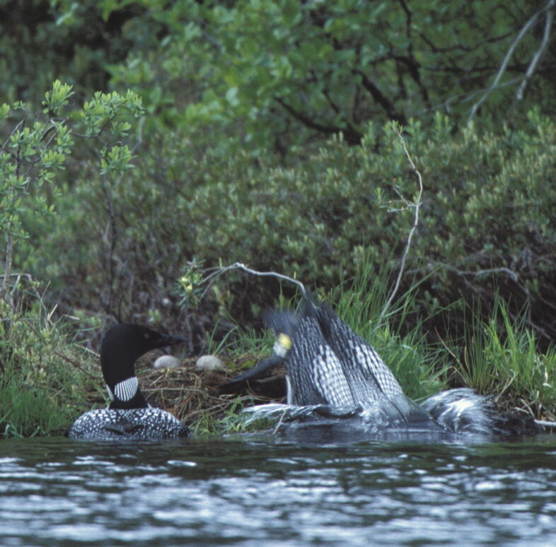 Nest exchange on Newark Pond in 2002. The bird leaving the nest was re-sighted this week on Newark Pond. / © Elinor Osborn