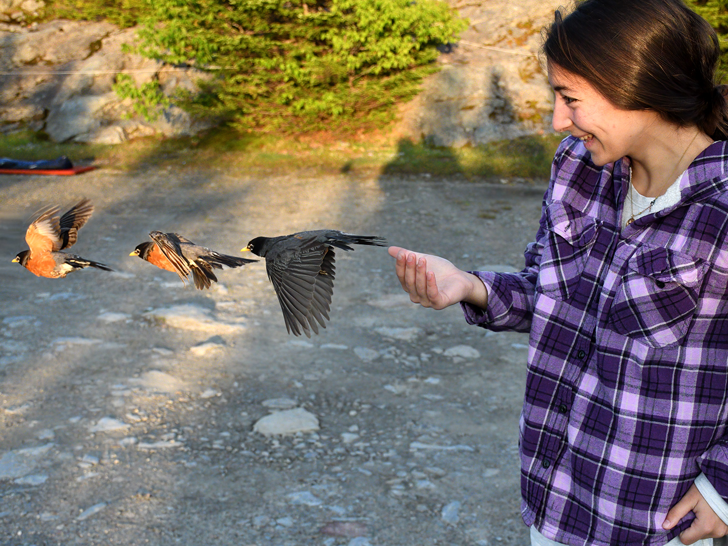 VCE Intern Natalie DeVito, releasing a male American Robin. © Mike Sargent