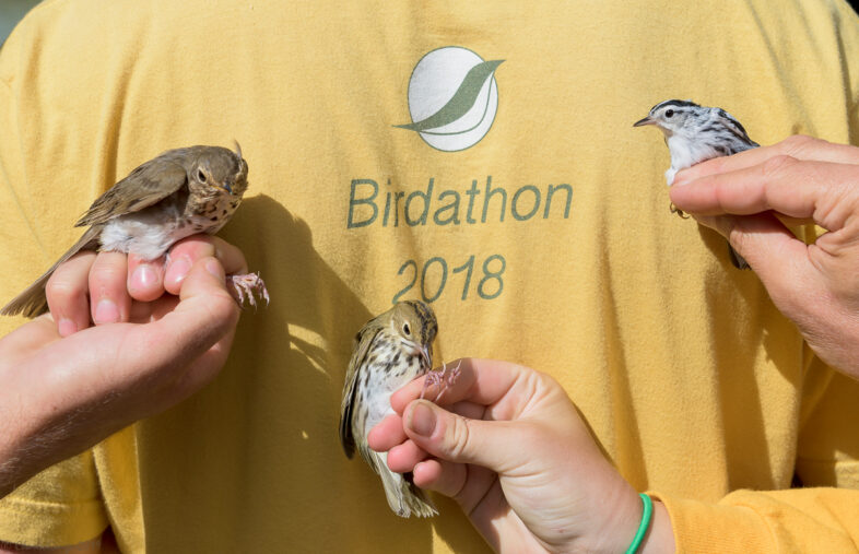 Avian advertisers for VCE: from left to right, adult Swainson’s Thrush, HY Ovenbird, HY Black-and-white Warbler. © Charles Gangas