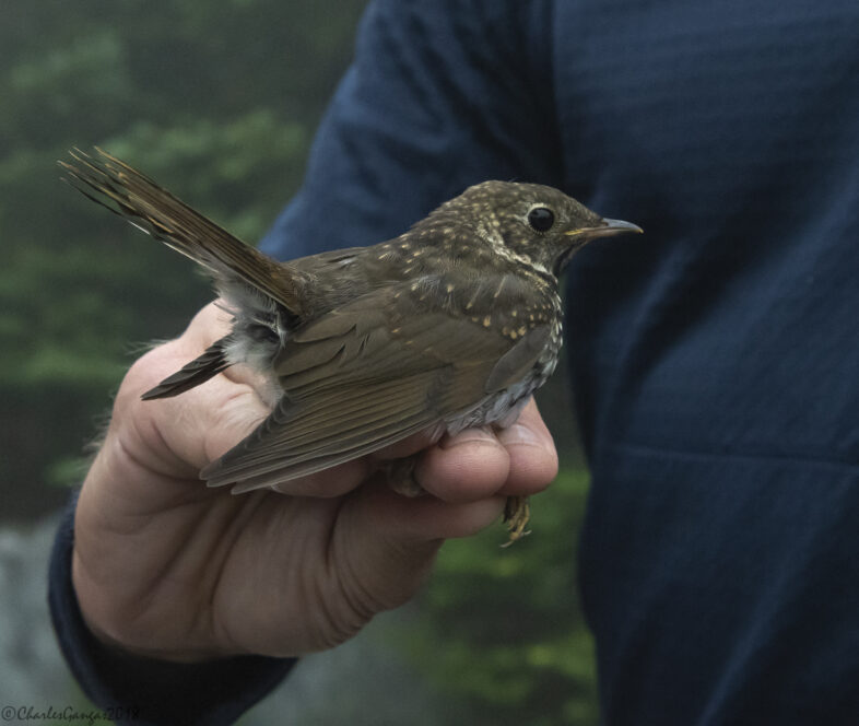 The season’s first juvenile Bicknell’s Thrush on Mt. Mansfield, 25 July 2018. Photo courtesy of Chuck Gangas.