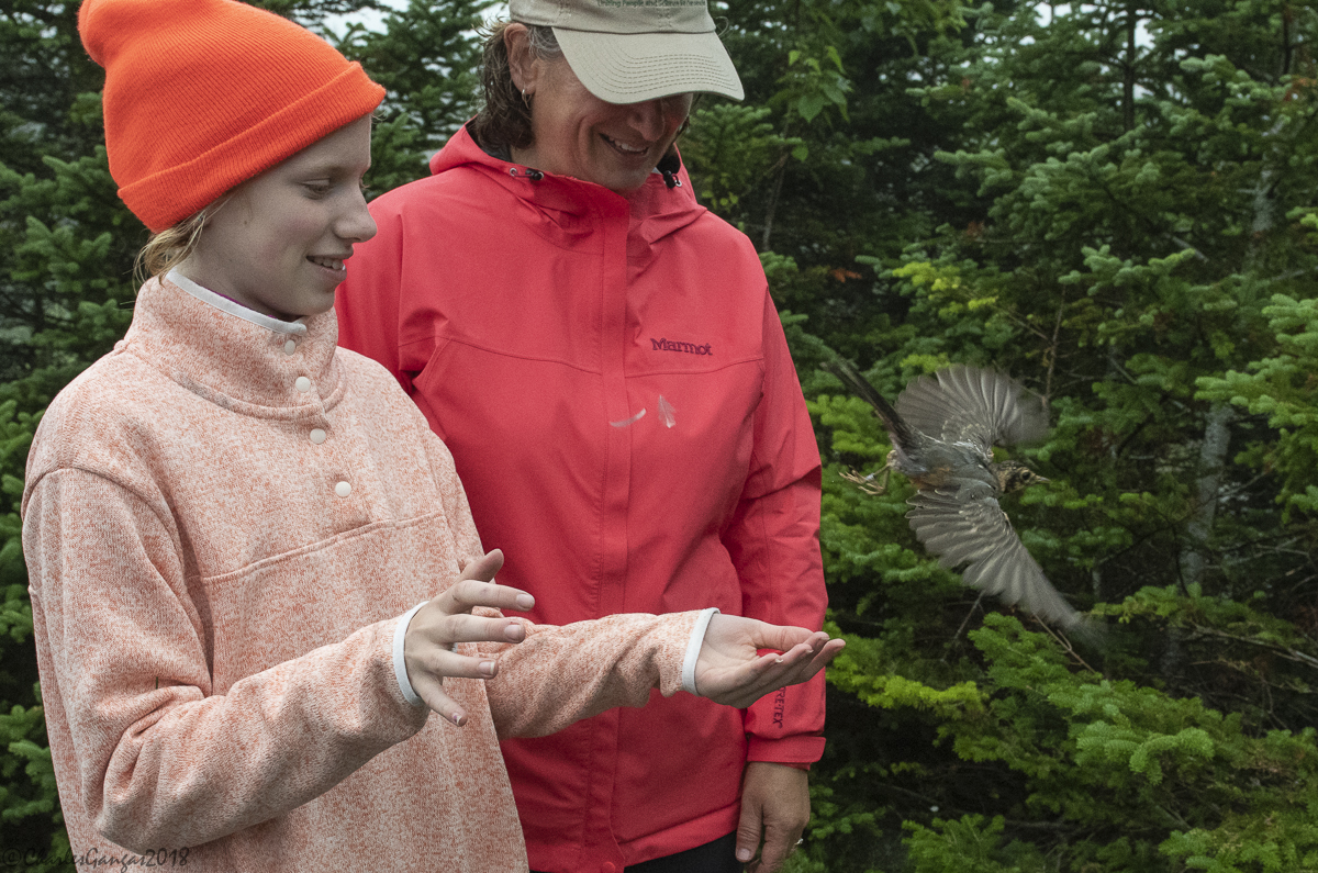 Brooke Hindinger (left) releases a banded juvenile American Robin as Mom (and VCE Associate Director) Susan looks on approvingly. Photo courtesy of Chuck Gangas.