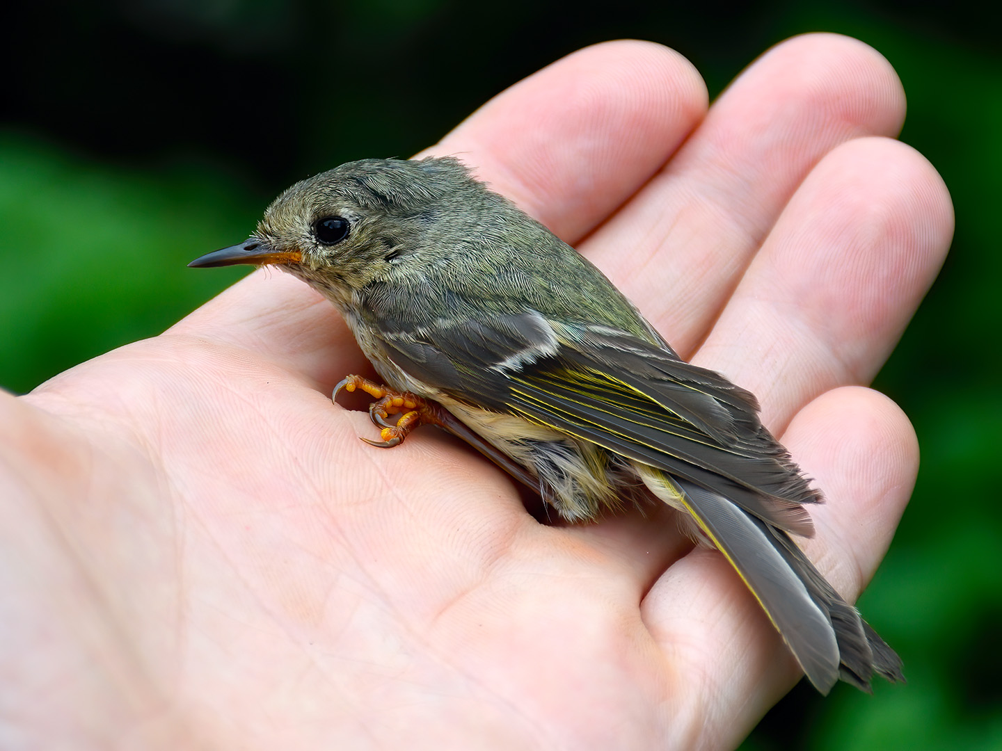 A diminutive adult female Ruby-crowned Kinglet ready for release after banding, Mt. Mansfield, 15 July 2020. © Michael Sargent