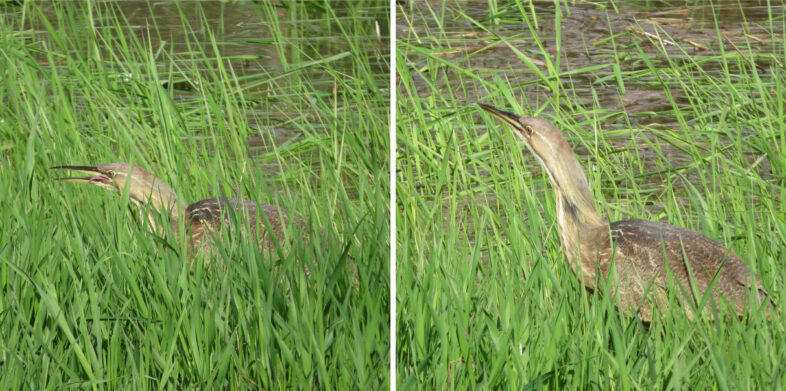 American Bittern breed in cattail and sedge wetlands where they are more often heard than seen. They have a habit of freezing in place with their neck stretched skyward and the brown striations camouflaging them among the vegetation. Their call is said to sound like an old “pump-handle” echoing across the wetland. Bitterns were found in 70% more survey blocks during the Second Vermont Breeding Bird Atlas compared to the first, prompting it to be removed from a Species of Special Concern list in 2010.