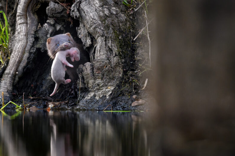 Congratulation to Kyle Tansley for winning the May 2020 Photo-observation of the Month. He captured this American Mink moving her kits from one den to another. “She was moving her babies from one den to another,” wrote Kyle. “When I arrived, I was told she had already moved two. I saw her move two more.”