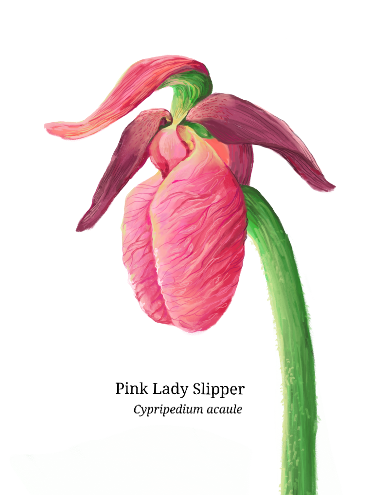 During my first week, I hiked to the top of Mount Cardigan in New Hampshire with my fellow interns and some VCE biologists. Despite being eager to see the view of the White Mountains at the summit, we stopped every 20 feet to identify a new plant, listen to a bird song, or try to find a salamander under a log. One species we saw was Pink Lady Slipper (Cypripedium acaule), a distinct wildflower belonging to the orchid family! These orchids are very recognizable, making them a popular flower to seek out along trails during summer hikes. Their elegant beauty isn’t the only special thing about them; these pink orchids have a symbiotic relationship with a fungus in the soil that belongs to the Rhizoctonia genus.