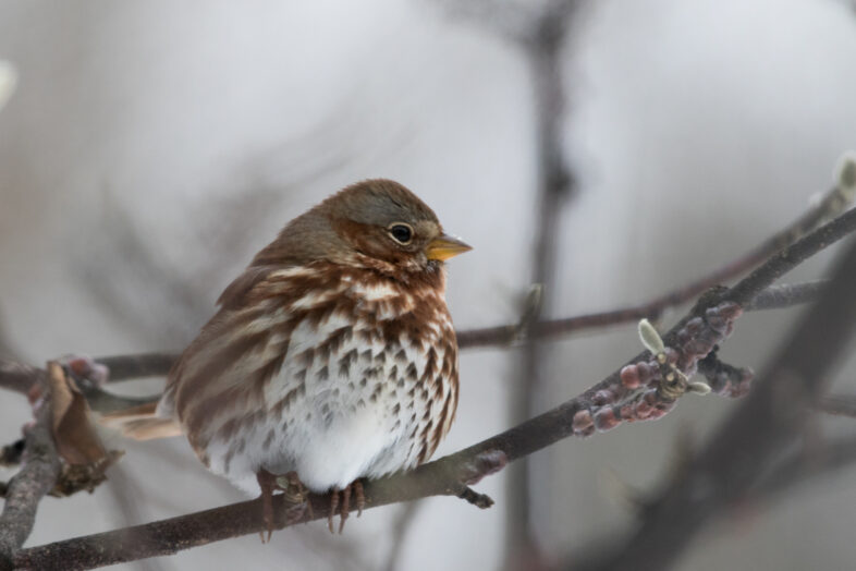 Late each fall, and then again in spring, Fox Sparrows visit our backyards here in Vermont. Most field guides and general references depict Fox Sparrows as a bird that nests only in the boreal forest of Canada and Alaska and the high mountains of western North America. The eastern subspecies of Fox Sparrow—the Red Fox Sparrow (Passerella iliaca iliaca)—has traditionally been considered a passage migrant through New England, stopping off briefly in late fall and early spring as it travels to and from its breeding grounds in eastern Canada. But that has recently changed.