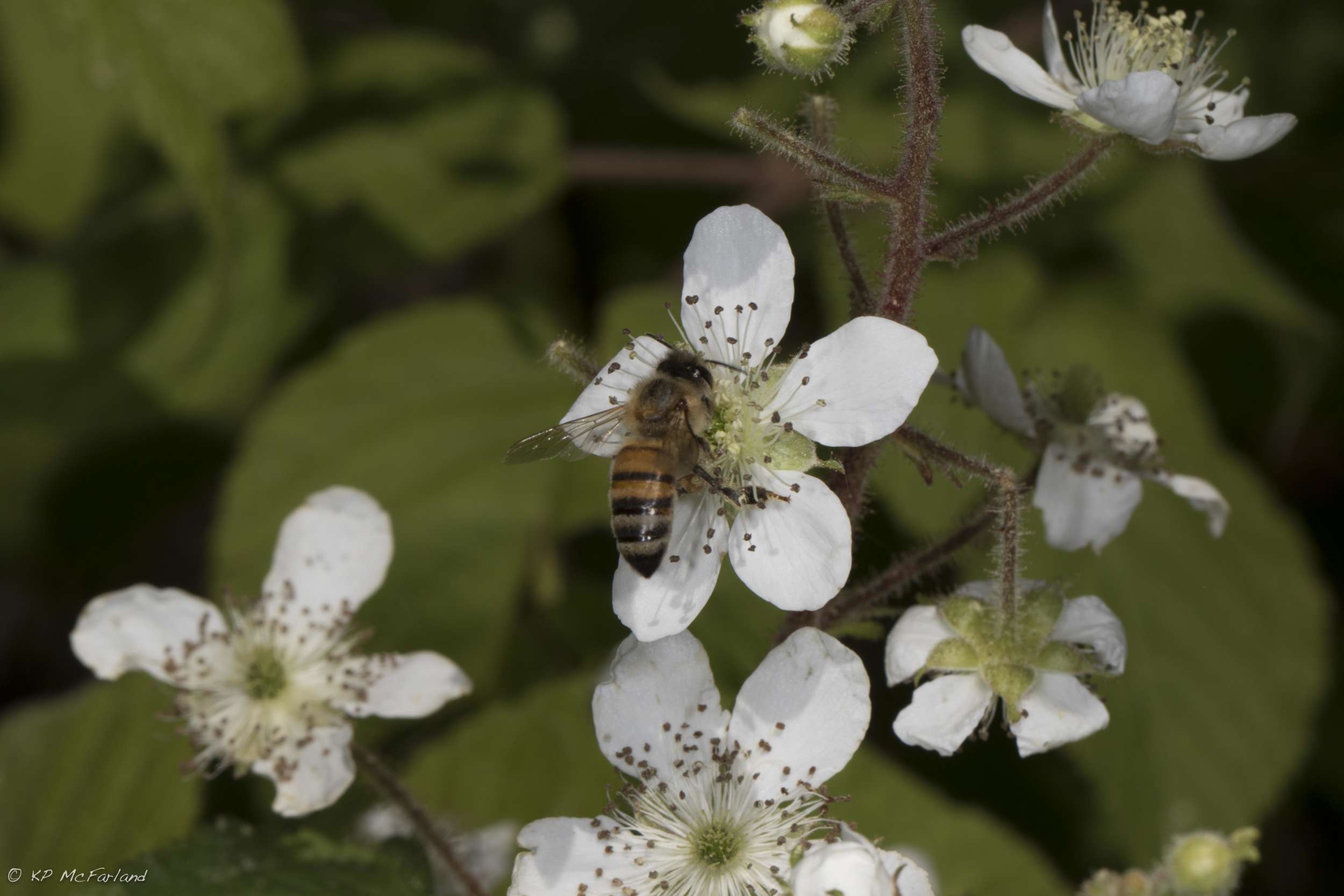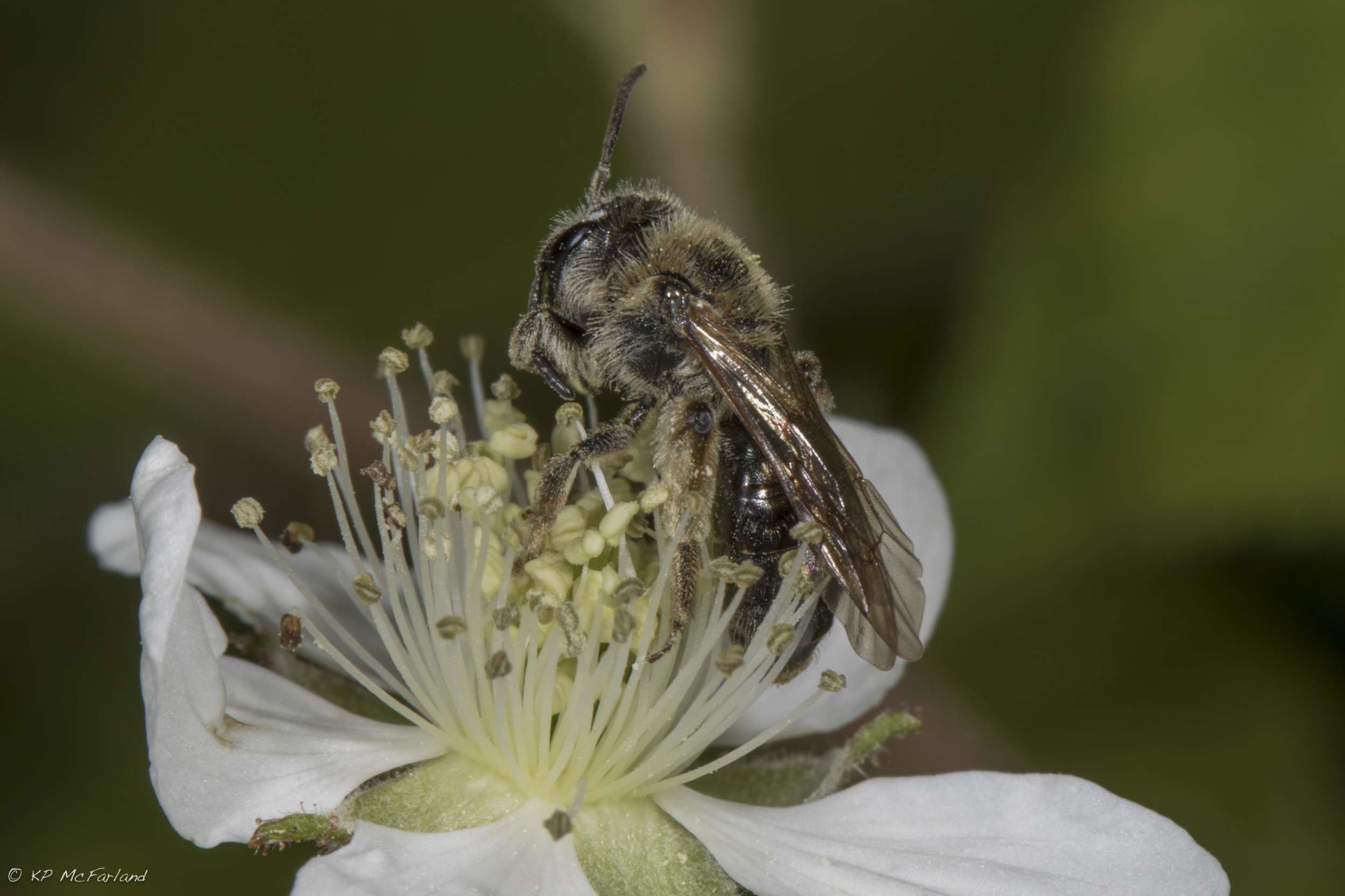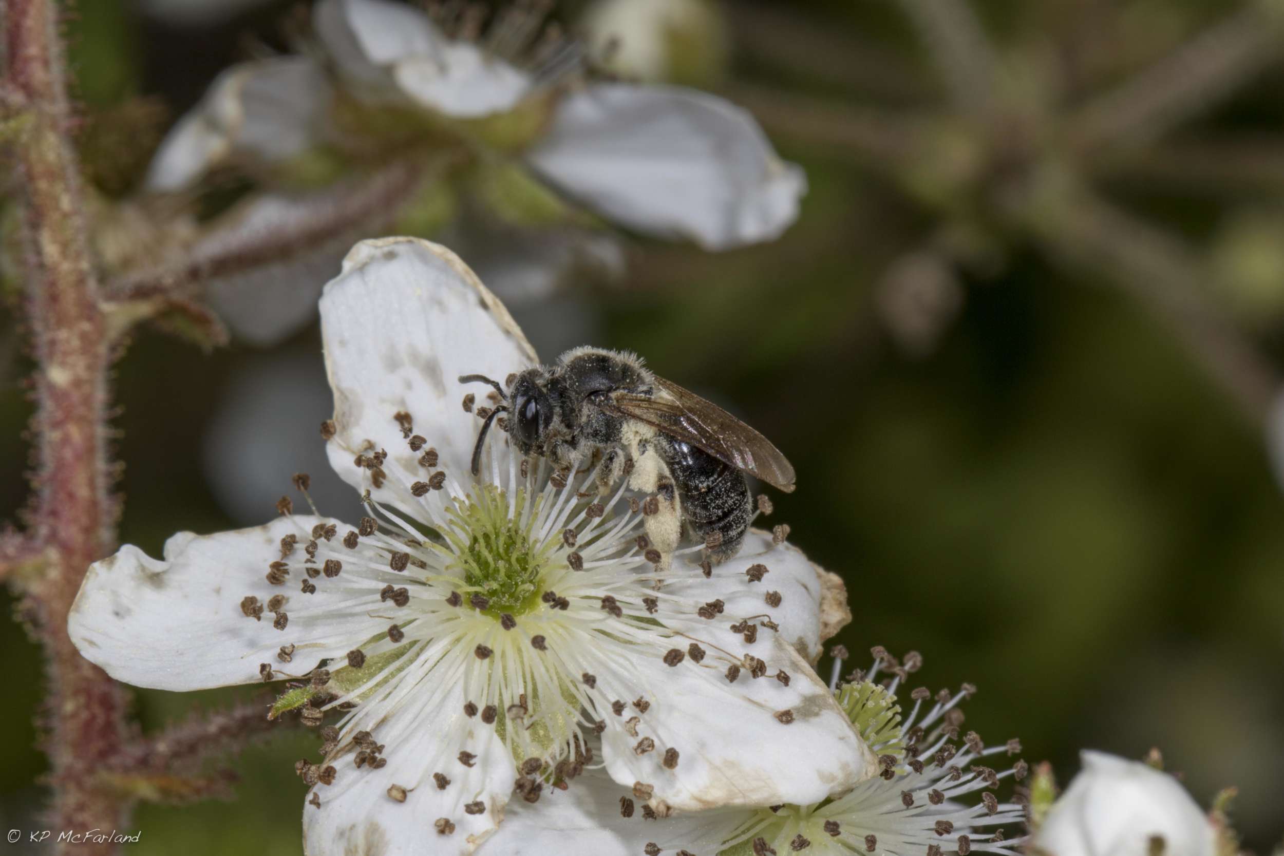 Base-banded Furrow Bee (Genus Lasioglossum), one of hundreds of native bees in Vermont, on a Black Raspberry flower. / © K.P. McFarland