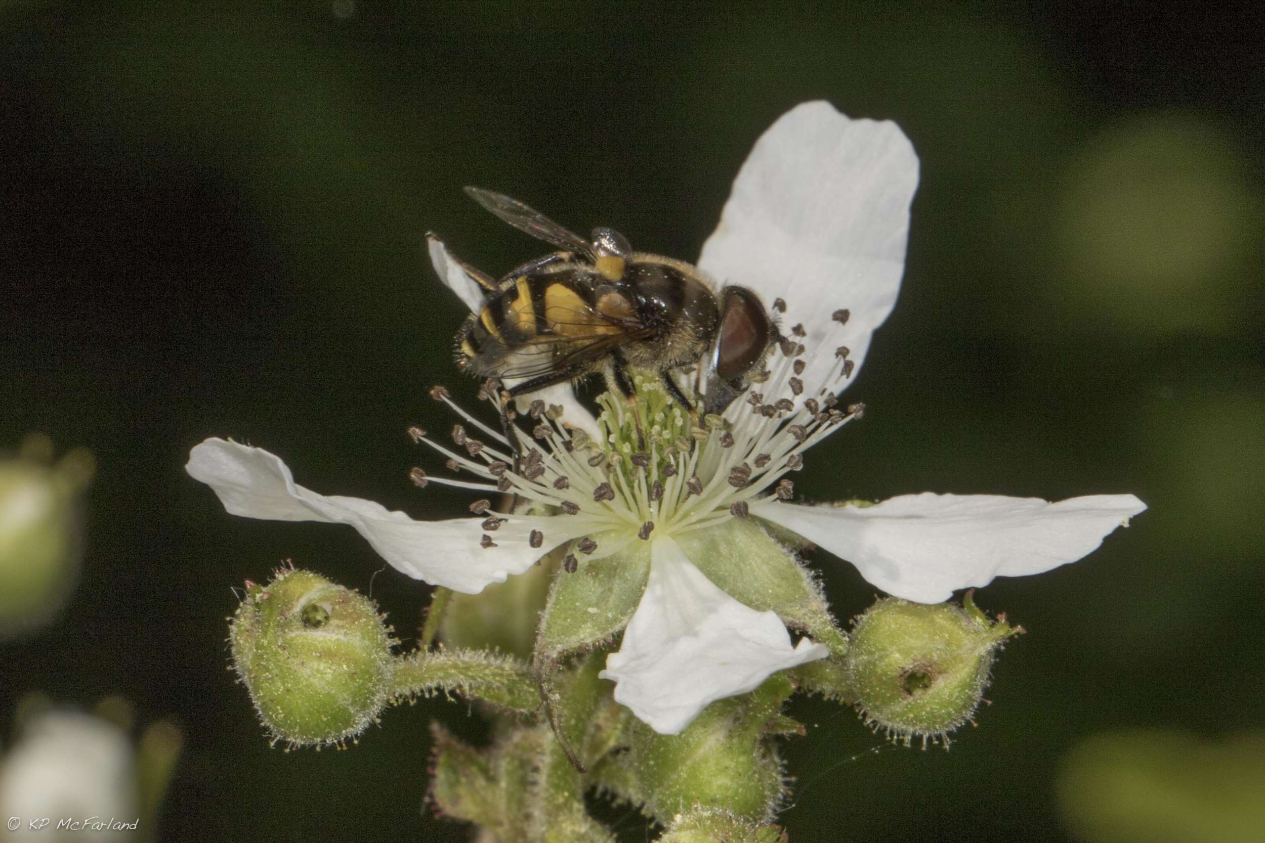 Not your typical pollinator, a Crane Fly (Infraorder Tipulomorpha) sips nectar from Black Raspberry. / © K.P. McFarland