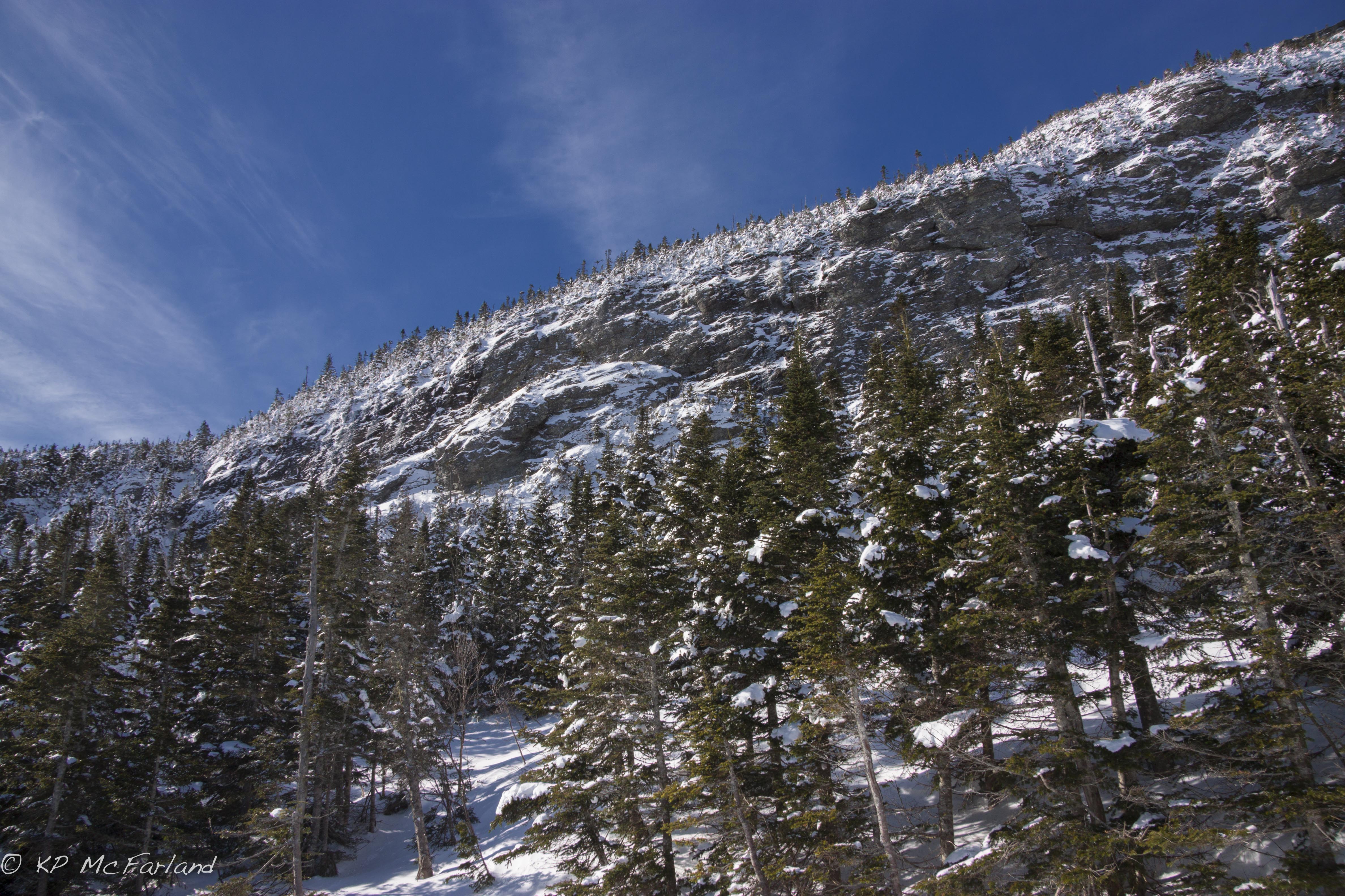 Depending on the elevation and even on which direction the slope is facing, there are different kinds of trees. At the bottom of the mountain, we have a typical northern hardwood forest – beech, maple, birch. But as we go up the mountain, we’ll find more and more evergreen trees until at the top of the lift, we’ll be in the montane fir forest – balsam fir, red spruce and heart-leaved paper birch.
