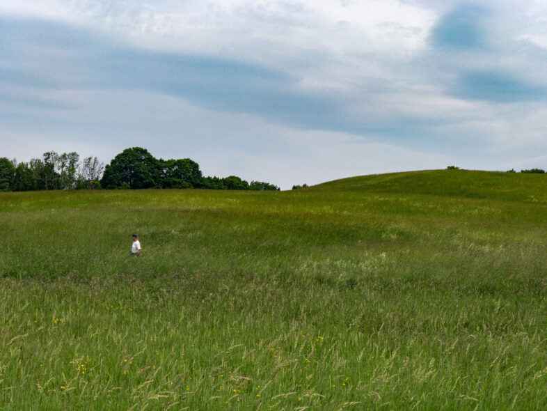 Carl McCuiag walks through the hayfield to get a close look at a Bobolink singing nearby. / © KP McFarland