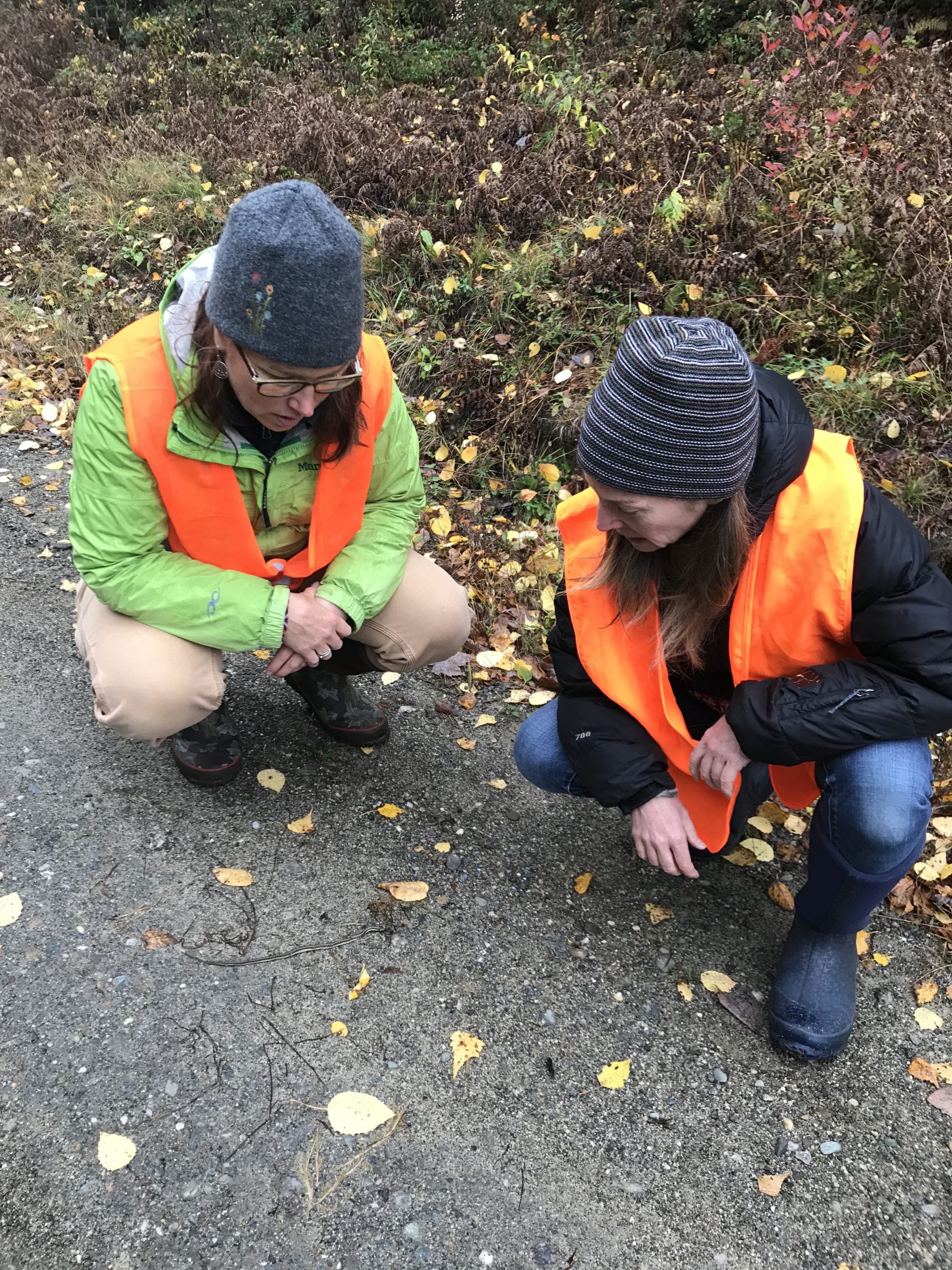 This month, biologists Kent McFarland and Sara Zahendra are looking for roadkill in the Cold Hollow Mountains in Belvidere, Vermont, with Bridget Butler, Program Director of Cold Hollow to Canada.
