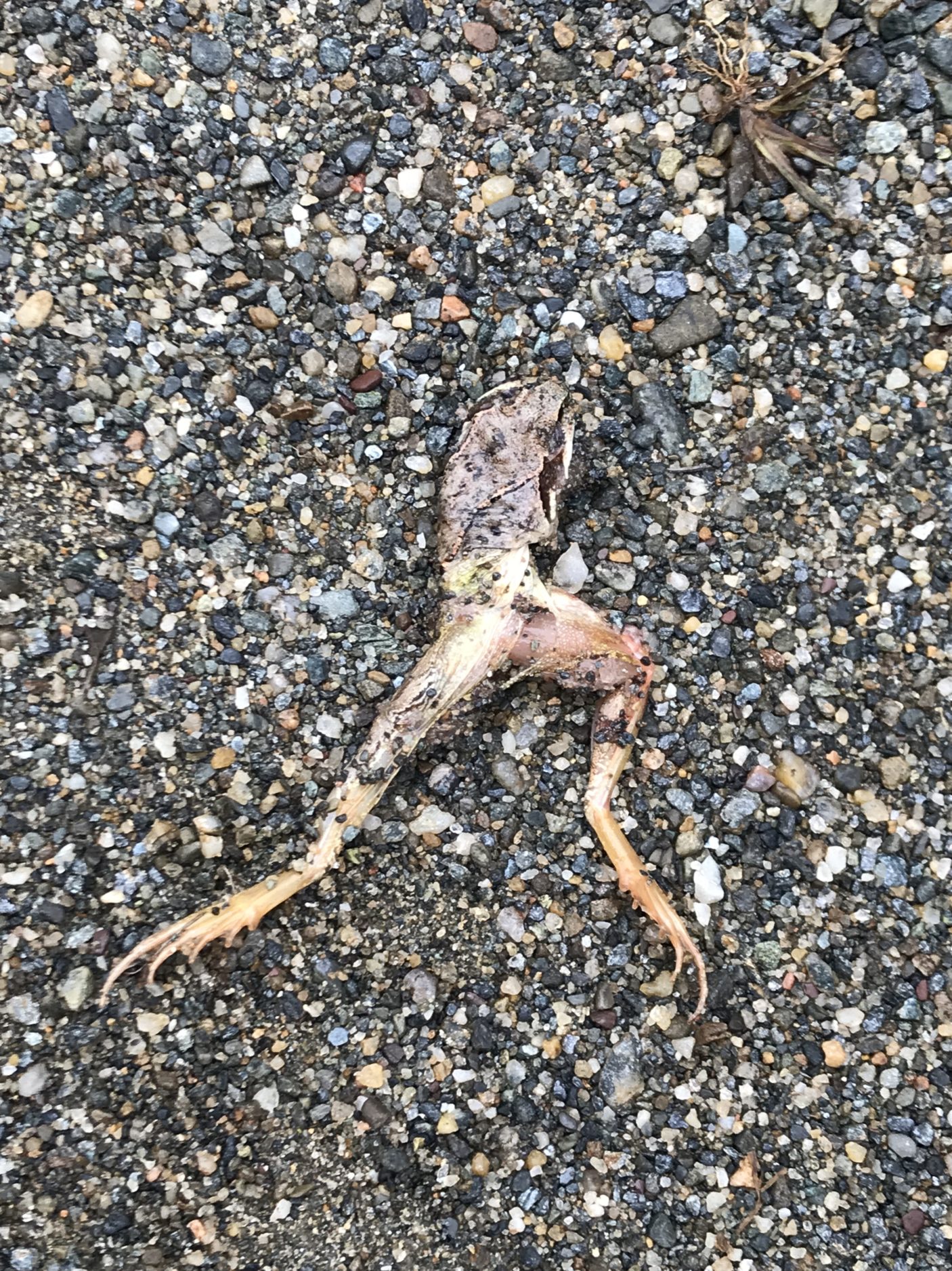 This Wood Frog likely attempted a cross during rains yesterday and last night. Click on the image to see the observation reported to WildPaths project on iNaturalist.