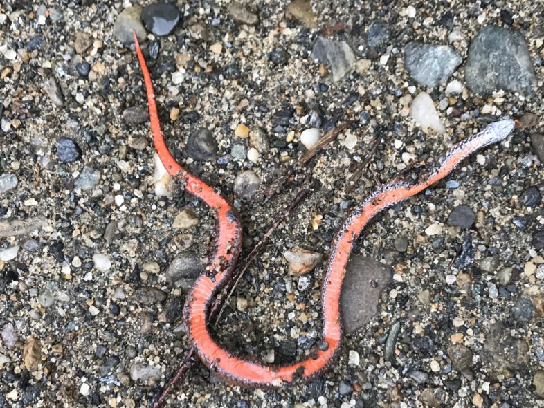 Roadkill photos, like this one of a Red-bellied Snake, can be posted to iNaturalist to help discover the “pinch points” where wildlife crosses our roadways. Click on the image to see this observation out on the WildPaths iNaturalist project.