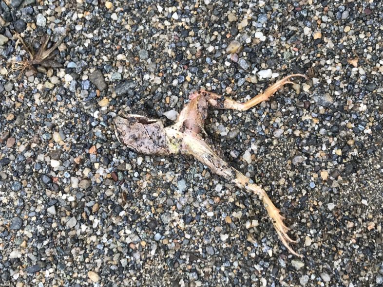 This Wood Frog likely attempted a cross during rains yesterday and last night. Click on the image to see the observation reported to WildPaths project on iNaturalist.