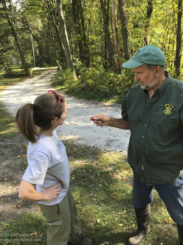 Steve Parren and Sara excavate a turtle nest that has hatchlings to be released safely in the lake. / © K.P. McFarland