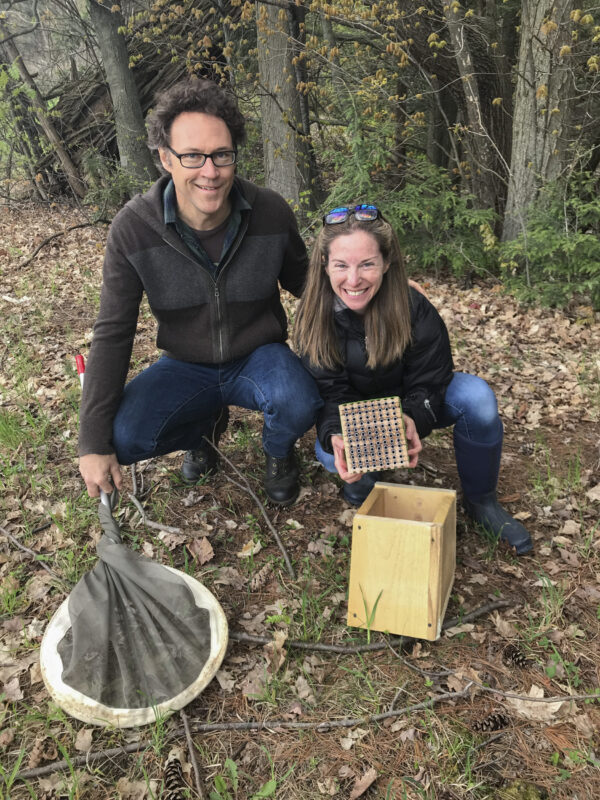 Leif Richardson and Sara Zahendra with a new bee nesting box. / © K.P. McFarland