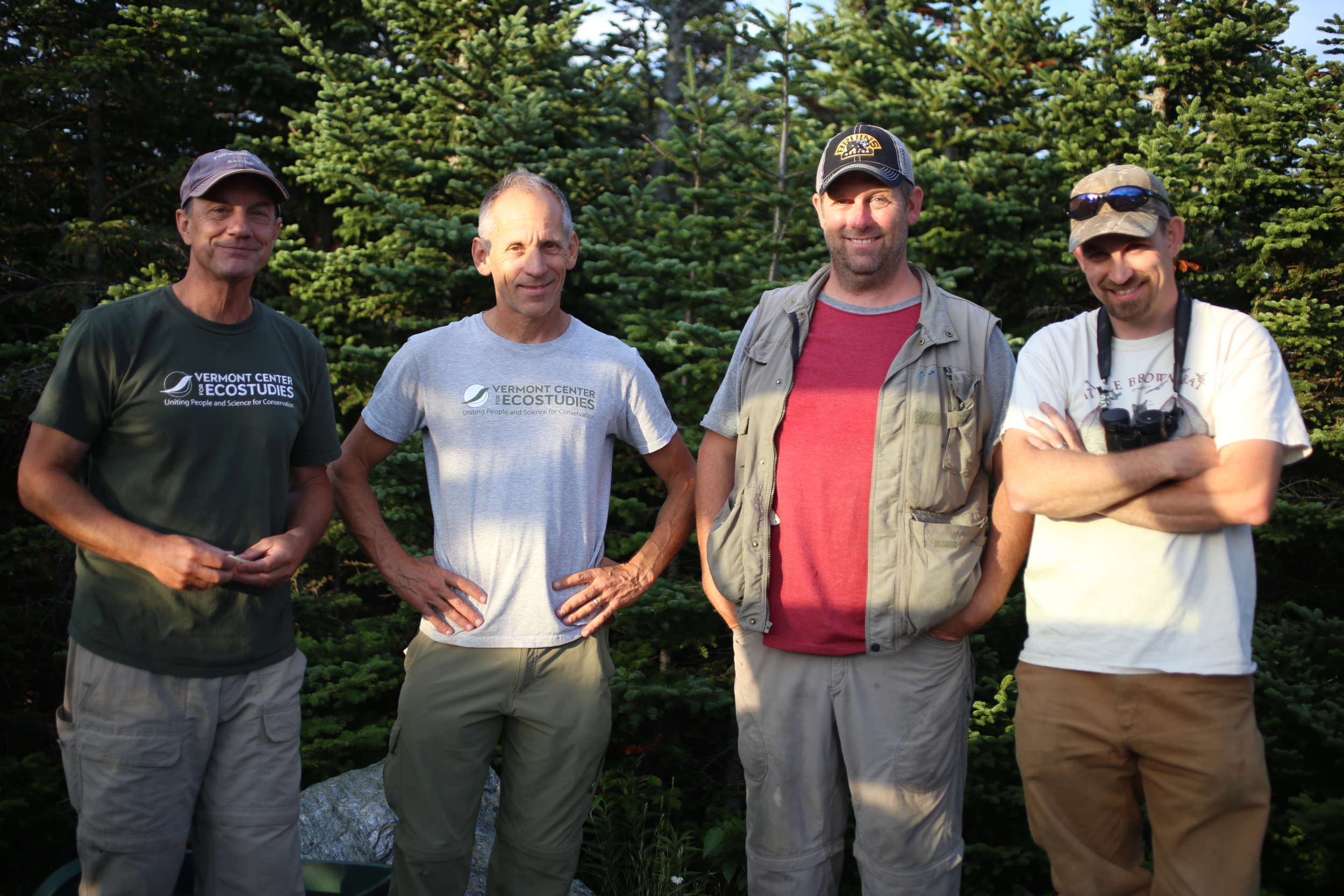 VCE banding team on Mt. Mansfield, 28 July 2016. L-R Steve Faccio, C. Rimmer, Brendan Collins, Noel Dodge. © Carla Skinder