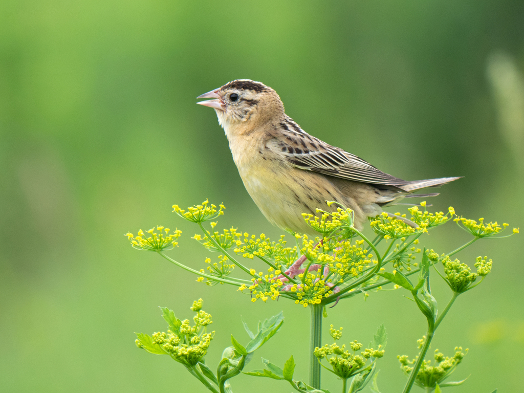Female Bobolink perched on invasive Poison Parsnip © Susan Elliot via iNaturalist