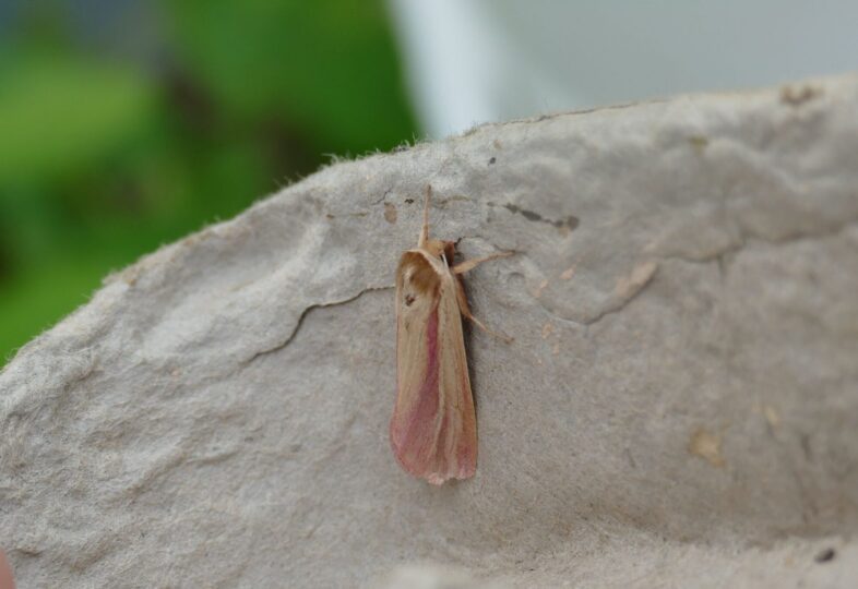 We also observed some interesting non-target wildlife. Although we were not surveying birds, we witnessed nesting activity of Orchard Orioles and Field Sparrows, both uncommon species that were exciting to document. Dr. Narango also can’t help but do some mothing wherever she goes, so she also set up a UV light on two nights for fun. In addition to documenting a wide variety of beetles and other insects, she also found a state-listed moth species: the Pink-streaked Moth. This moth is a sand plains specialist species whose host plants include several native switchgrasses. The presence of this moth near the coastal area suggests that the Smith Richardson Preserve might be an important stronghold for this species.