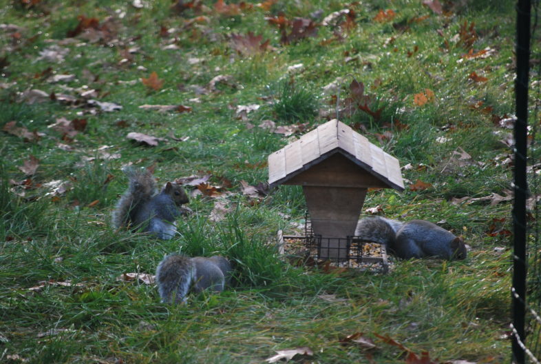 Eastern gray squirrels bulking up at a bird feeder, a sight that will likely become familiar to many in the northeastern U.S. during the approaching colder months. © Bruce Stone, flickr