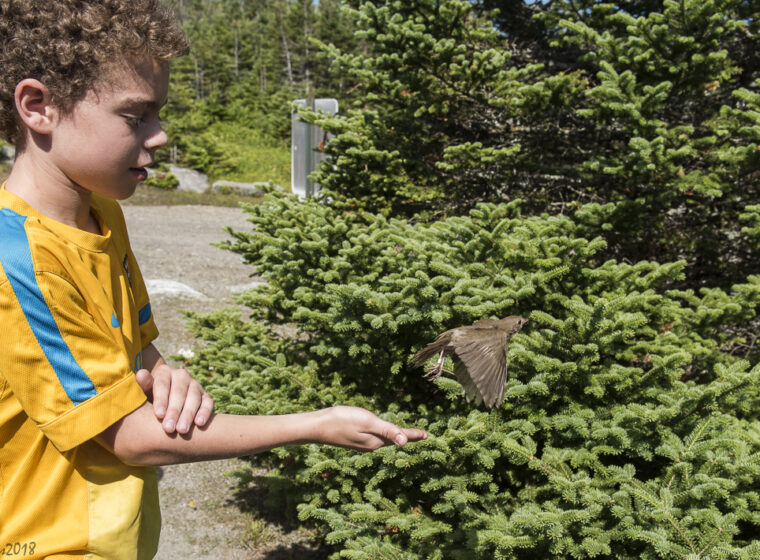 VCE’s sixth banding session of 2018 on the Mt. Mansfield ridgeline featured several free-flying juvenile birds in our nets and some enthusiastically engaged youth in our work .
