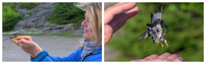 Blackpoll Warbler — 15 (11 males, 4 females); 8 new bandings, 4 returns (female from 2019, 3 males from 2021), 4 within-season recaptures; females with incubation patches