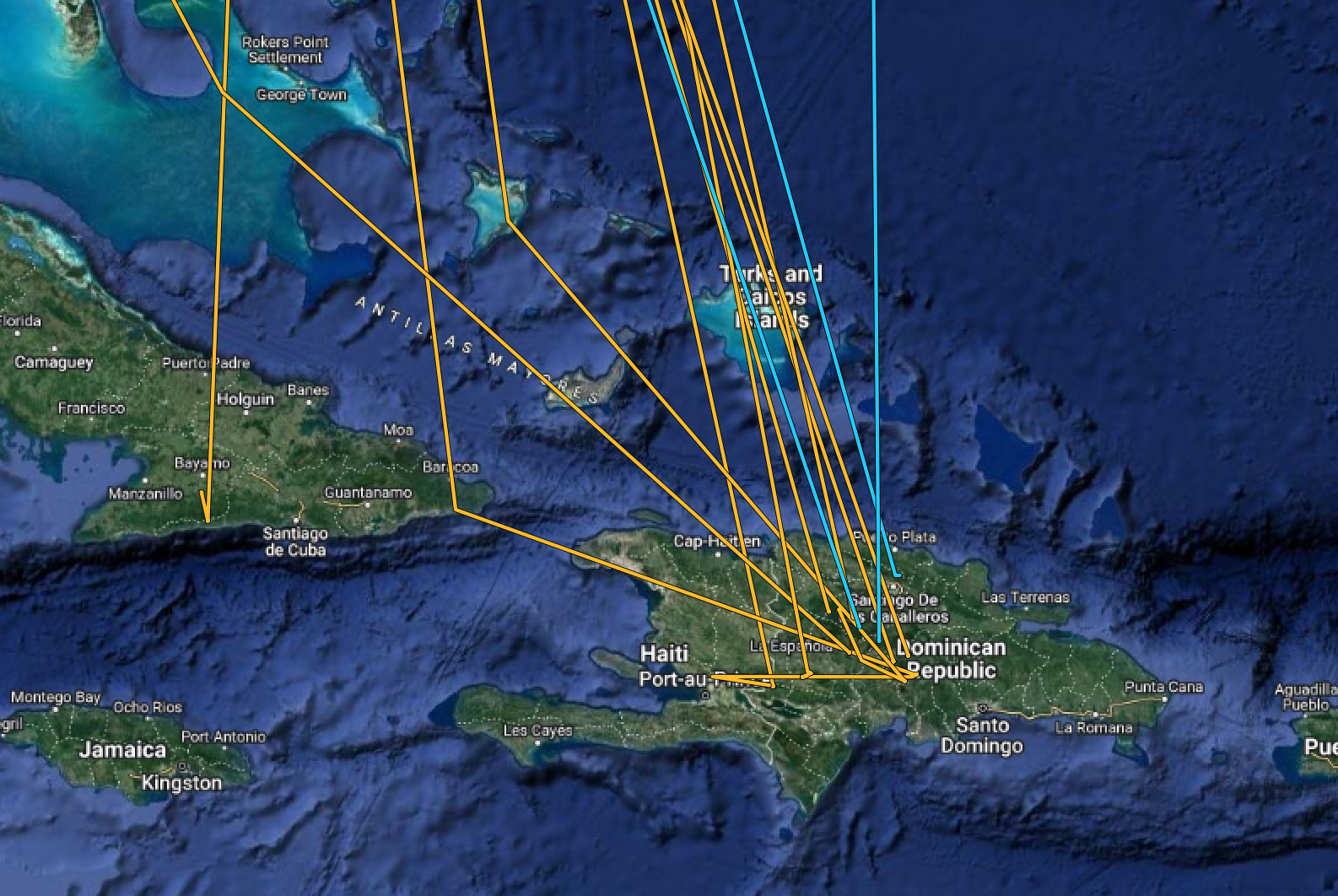 One additional highlight for now from the new crop of GPS tag data, which we have only cursorily examined: two BITH made landfall in the Bahamas before continuing to their overwinter destinations in the DR. One bird was on New Providence Island on 15 November, then provided a GPS fix 15 days later during its apparent nocturnal migratory flight southward, as it appeared over open water ~65 km west of Great Exuma (fixes are scheduled at midnight, so it had to have been flying). A second bird was on Acklins on the early date of 15 October. Because GPS battery life limits the number of fixes we can schedule in each backpack, and since our primary research question involves late winter movements of BITH, we scheduled only 3 monthly fixes in September—November, concentrating fixes in March and April. Thus, any data obtained during fall migration are essentially “gravy” for us, though fascinating and informative. We now know what we have long suspected; that the Bahamas are a stopping point for at least some migrant BITH in autumn.