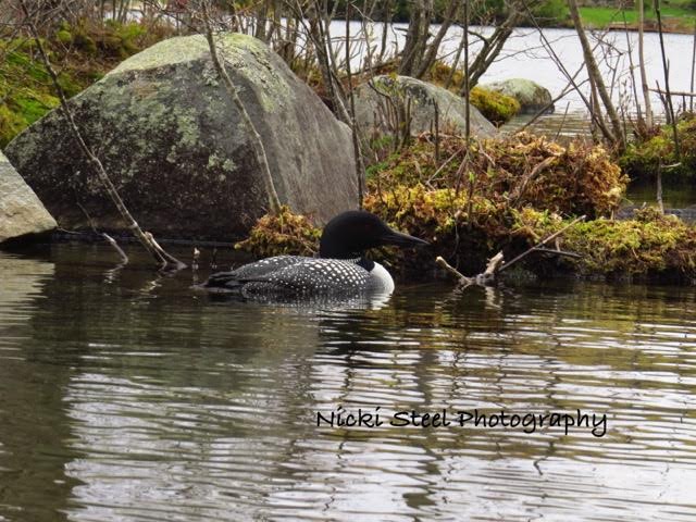 A loon coos softly with it’s mate just out of view as part of courtship and/or nest searching on Lake Raponda. Photo by Nicki Steel