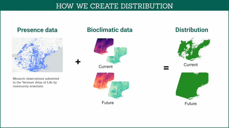 VCE Data Scientist Mike Hallworth and I are helping them do just that by using species distribution models (SDMs), which are based on observations submitted to the Vermont Atlas of Life by community scientists, in combination with environmental data collected by satellites.
