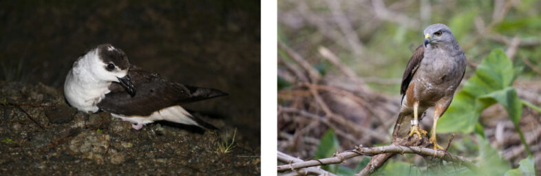 Two critically endangered Hispaniolan breeding species for which Anderson Jean has made remarkable field discoveries: Black-capped Petrel (left) and Ridgway’s Hawk (right). © Eladio Fernandez (left) and Pedro Genaro (right)