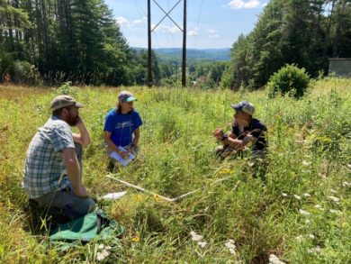 VCE Director of Conservation Science Ryan Rebozo working with Becky Proulx and Matt Dragon on plant species richness quadrats.