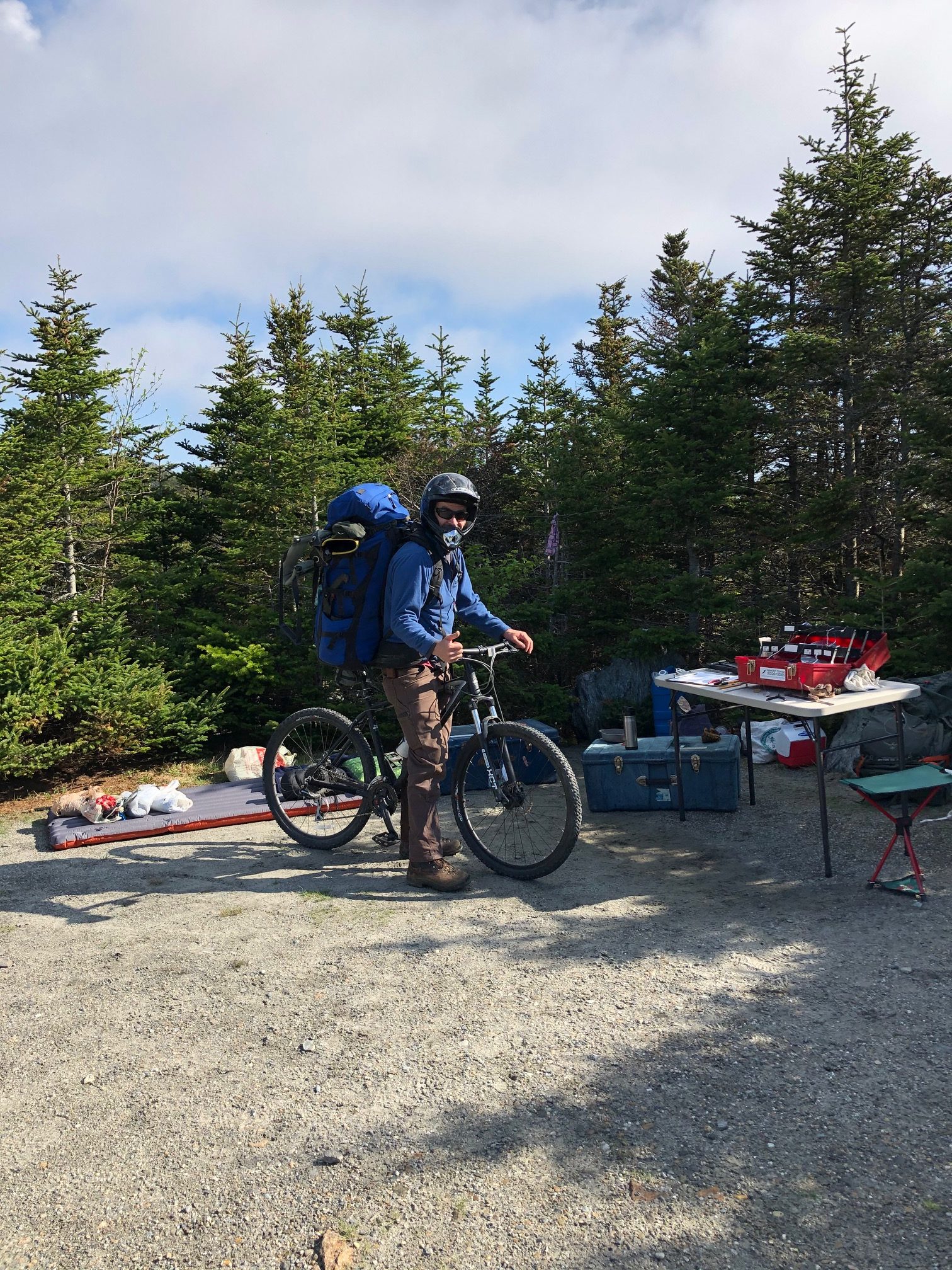 We had timed our inaugural 2020 banding session to coincide with a perfect weather forecast—vital with no available shelter in vehicles or buildings on the ridgeline, as we’d had each of the previous 28 years. Undaunted, we brought tents if needed, but planned to sleep under the stars. First, however, we had work to do. The 4-mile ascent proceeded without incident (well, except for the trailer behind Dave’s ATV coming unhitched and pitching some of our gear unceremoniously into the road—no damage done), and we were left to our own devices in the upper parking lot by 1 pm, a record early arrival. Bicknell’s Thrushes (BITH) were calling within minutes, either taunting or welcoming us, we couldn’t be sure.