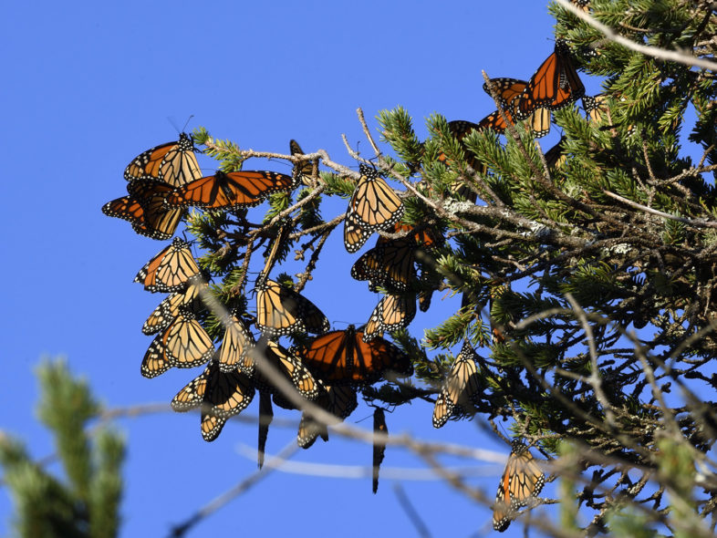 Monarchs roosting for the night on Monhegan Island before continuing their migration south © Michael Sargent