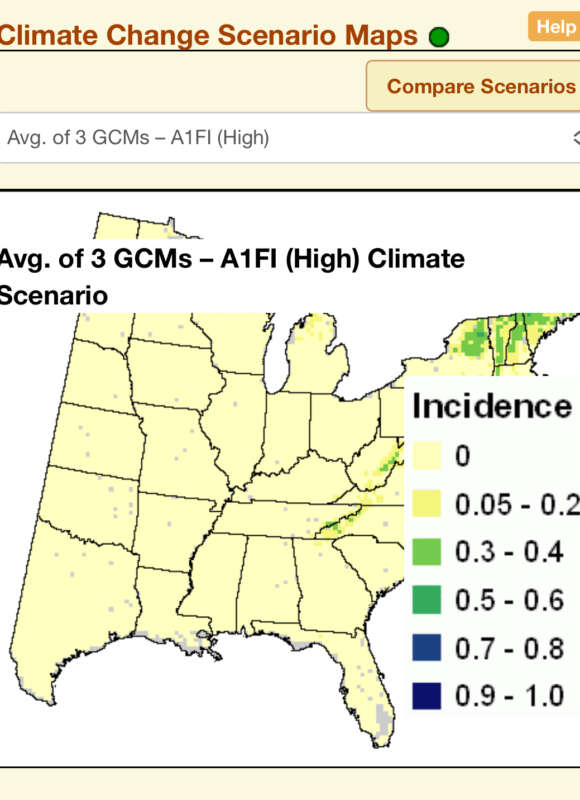 I was fortunate to attend the last day of VCE’s teacher workshop. I was pleased to attend the session since I was on the other end of the teachers’ classrooms in middle and high school not very long ago. I was lucky to have had science teachers who were honest about the gravity of climate change and conservation—I am where I am now because of it. While it’s easy to turn nihilistic and think it’s impossible to make a meaningful change when you’re only one person, my teachers’ goal was to frame the truth in a motivating and empowering way instead of a hopeless one. For instance, one useful tool is the USDA’s Climate Change Bird Atlas, which can show you expected future changes in bird abundance and distribution. The first image shows the “low change” projection for Winter Wrens, while the “high change” projection for Winter Wrens is shown in the second image. Even though it can look daunting, these projections can give us hope if we frame them correctly; if we and future generations work to minimize climate change, we get to keep our Winter Wrens.