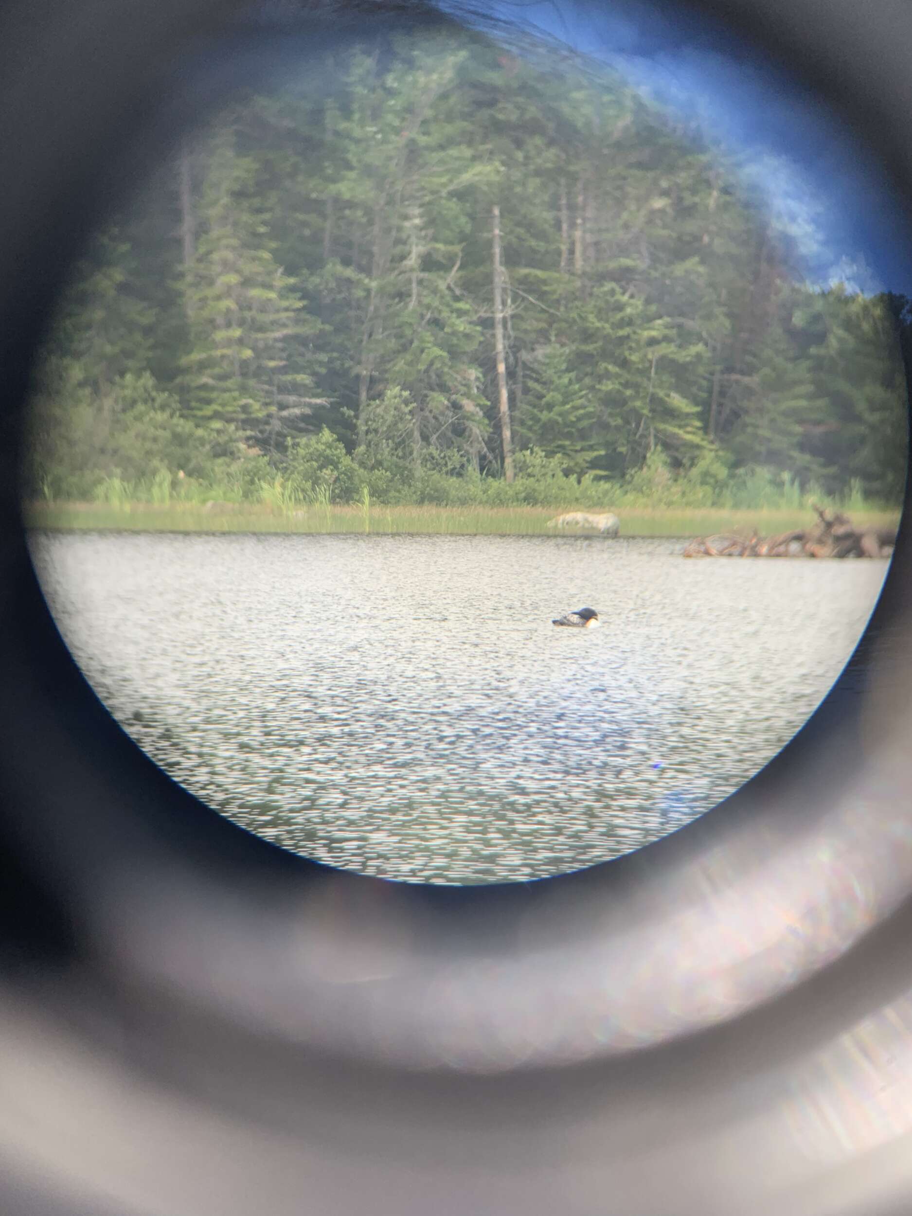 During our second loon trip, we joined seasonal loon biologist Eloise Girard and helped identify bands on an unknown Loon. This loon was very confident—he approached us when we splashed the water and got close enough for us to see his bands without needing binoculars.