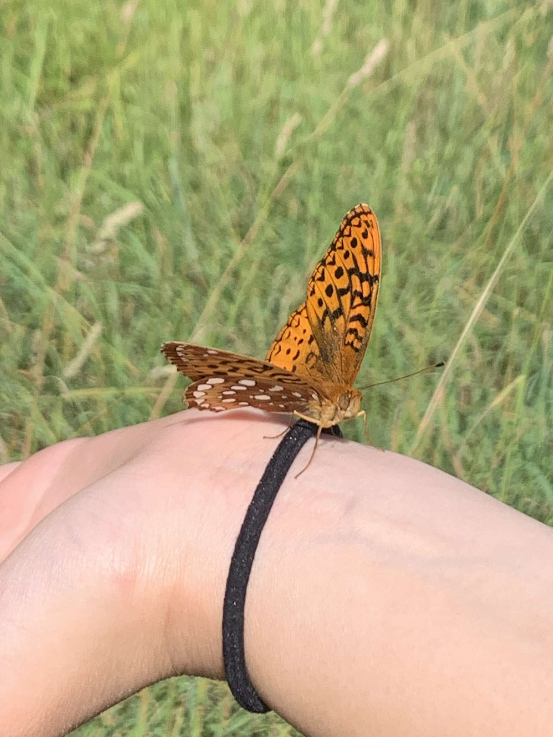 To round out our invertebrate-catching skills, Dr. Hill taught us how to capture butterflies with sweep nets safely. I was previously scared to catch butterflies because I didn’t want to hurt them accidentally, but now I know how to do it carefully and deliberately! This fritillary sat on my wrist for a while after I let it go from the net.