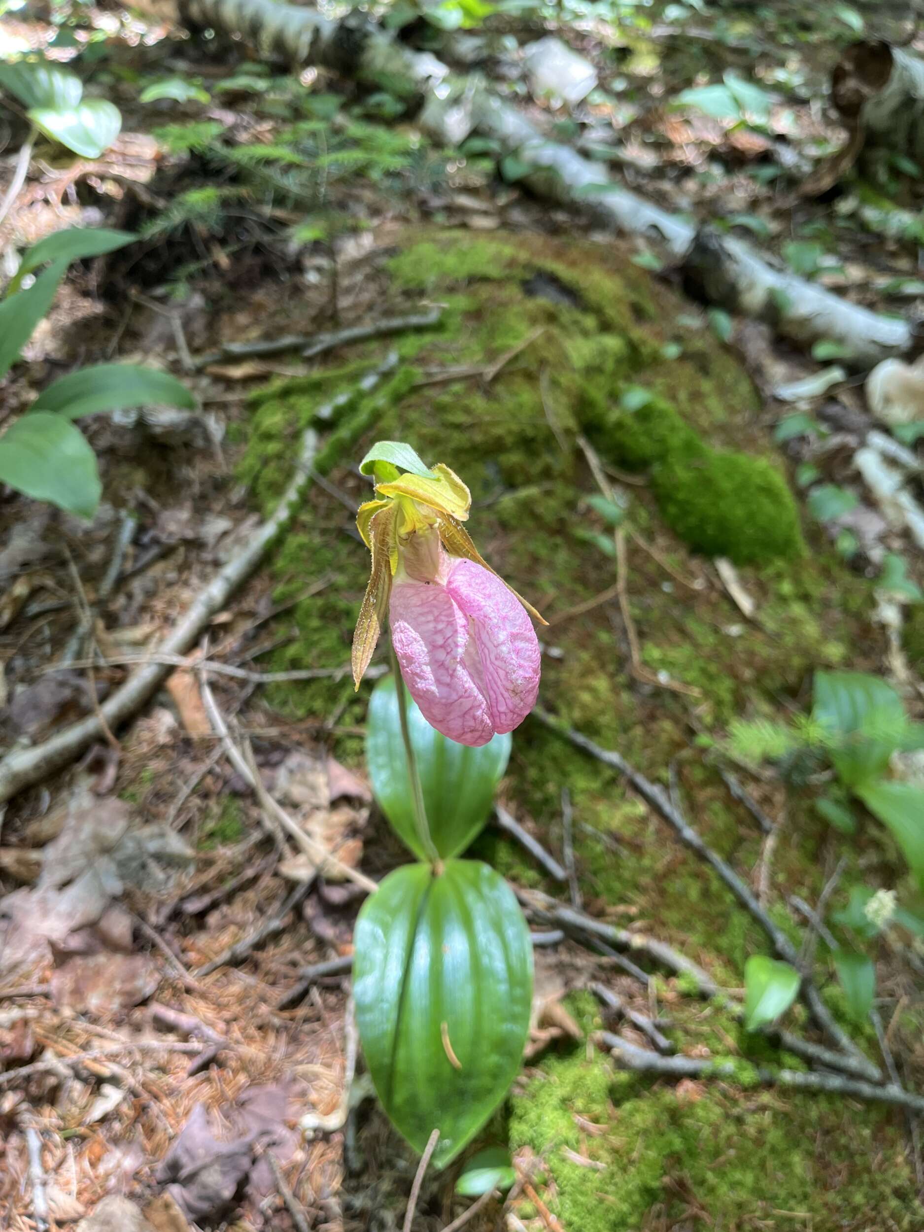 On our way up, we hoped to find some salamanders. By gently flipping some logs, we found many Red-Backed Salamanders. I didn’t realize how common they were (they make a sizable chunk of animal biomass in the forest). On top of one log, we even found Wolf’s Milk, a protist that looks like a fungus but is actually a plasmodial slime! Nearby, we also found a few Pink Lady Slippers, an adorable orchid I was surprised to see so many of.